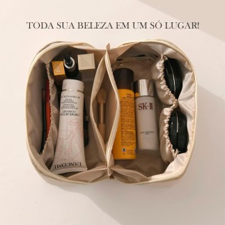 Necessaire Feminina Premium de Couro, Porta objetos, Estojo de maquiagem, Bolsa para viagem à prova d'água (Bege)