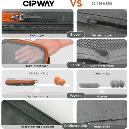 Cipway Cubos de compressão, organizadores de bagagem de viagem leves com bolsa de sapatos, bolsa de higiene pessoal e bolsa de lavanderia, itens essenciais de viagem para mala de mão (8 peças, cinza)