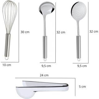 Conjunto de Utensílios de Cozinha Premium em Aço Inox, Acabamento Superior, Resistente (Escumadeira)