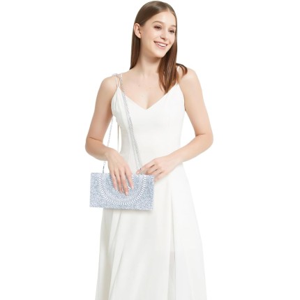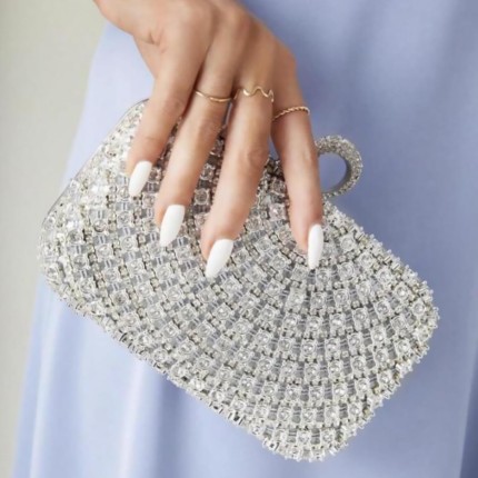 Bolsa Clutch Festa Feminina Prata Full Diamond Mão Ombro Transversal Com Correntes Removíveis