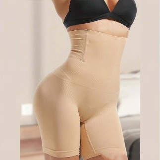 Modelador feminino de cintura alta, shorts com controle de barriga, modelador de corpo, roupa íntima feminina, Bege, M