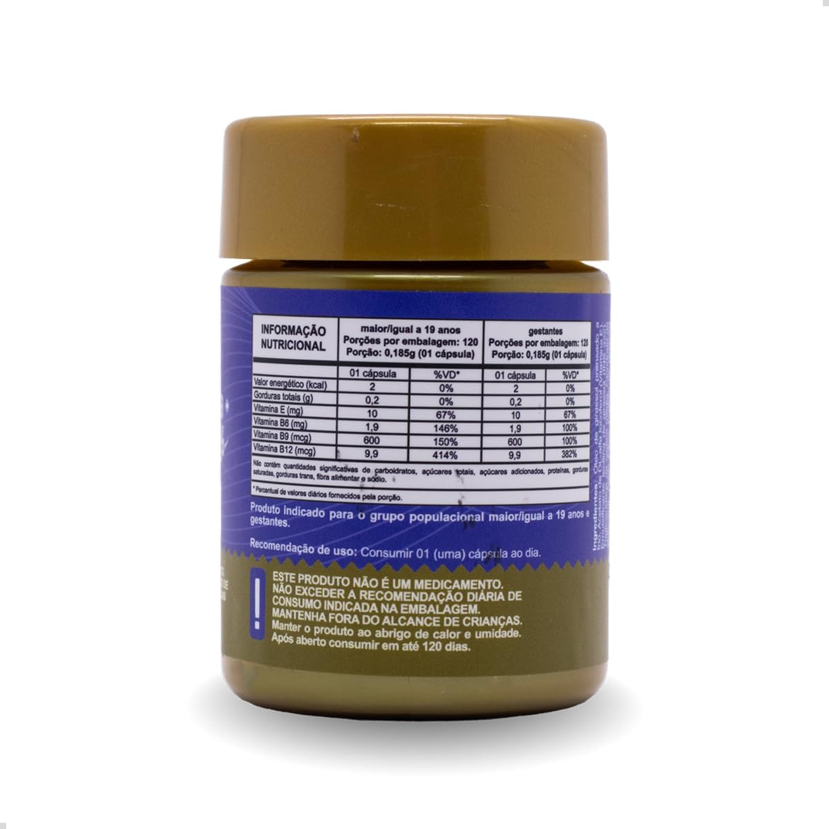 ✔️ Metilcobalamina (Vitamina B12 ativa) 9,9mcg | 382% do V.D.R. (Valor Diário Recomendado). ✔️ Metilfolato (Ácido Fólico Ativo) 600mcg | 100% do V.D.R. (Valor Diário Recomendado). ✔️ Piridoxal Fosfato (Vitamina B6 Ativa) 1,9mg | 146%do V.D.R. (Valor Diário Recomendado). ✔️ 10mg de Vitamina E (Antioxidante para preservar os nutrientes da formulação). ✔️ TCM (Triglicerídeos de Cadeia Média) para fornecer energia ao corpo e também maximizar a absorção de vitaminas. ✔️ Tecnologia LIPOSOLIS. Formulação lipossomal de alta absorção através do uso de fosfolipídeos de girassol. ✔️ Tamanho reduzido: Facilita o consumo diário, tornando o suplemento acessível para todas as idades. X Não contém Dióxido de Titânio, banido na Europa! Comum no Brasil e usado por muitas marcas, nós o evitamos para garantir sua segurança. X Livre de óleo de soja! Com 97% do óleo de soja brasileiro sendo transgênico, este produto oferece uma alternativa pura para sua segurança. X Não contém corantes artificiais! Este suplemento tem fórmula limpa, com apenas corantes naturais, garantindo pureza, segurança e saúde!