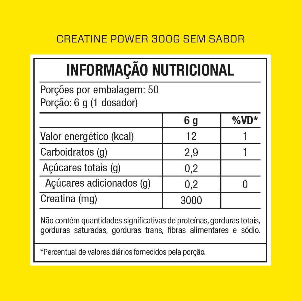 INGREDIENTES PURO: A fórmula contém apenas creatina monohidratada e Maltodextrina sem adição de corantes, aromatizantes ou conservantes artificiais “NÃO CONTÉM GLÚTEN.”