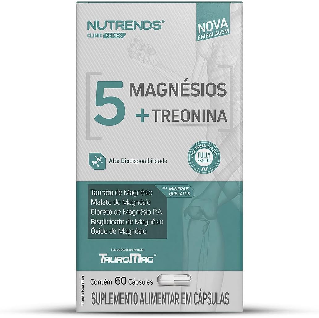 O 5 Magnésio + Treonina, da linha Clinic Series, possui fórmula exclusiva composta por 5 fontes de magnésio, juntamente com a L-treonina. As fontes de magnésio são: Taurato de Magnésio, Malato de Magnésio, Cloreto de Magnésio P.A, Bisglicinato de Magnésio e Óxido de Magnésio. Auxilia no funcionamento muscular e neuromuscular, e no processo de divisão celular.