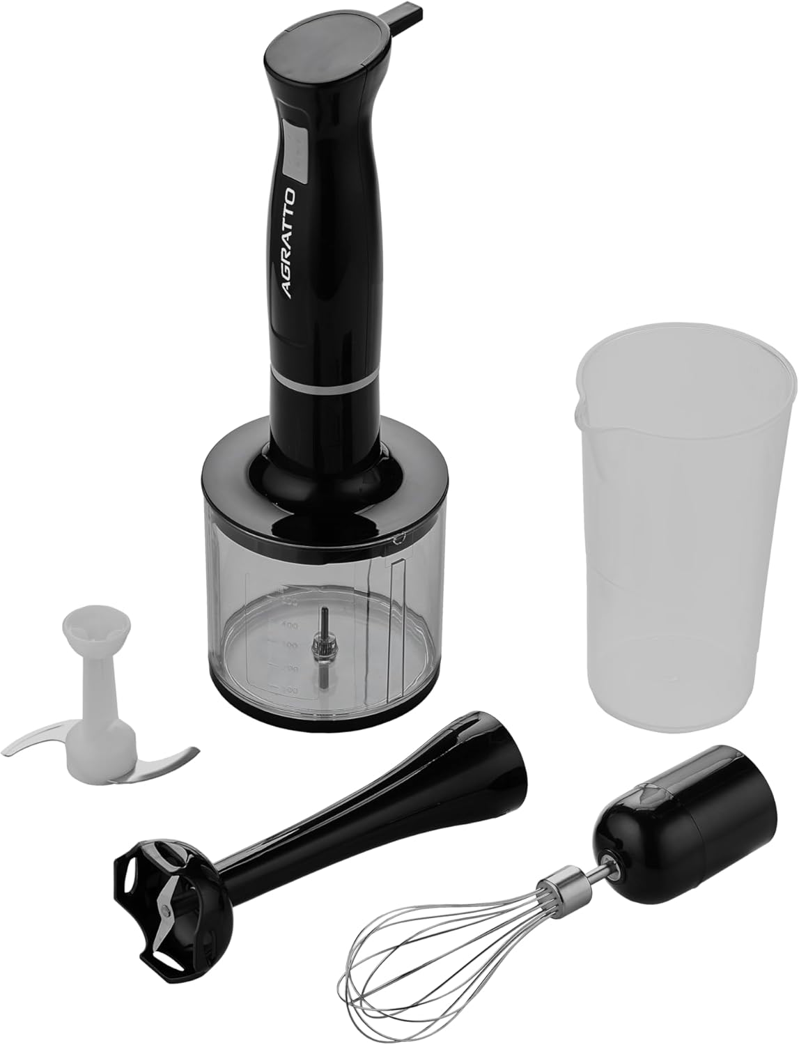 Agratto mixer 3 em 1, empunhadora ergonomica, botao de acionamento, corpo desmontavel,laminas em aço inoxidavel, protetor de laminas, capacidade 750 ml,,processador com capcidade 500ml, botão de acionamento