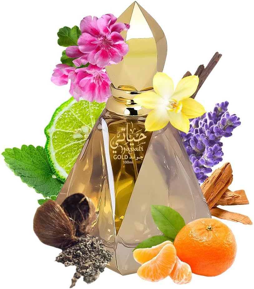 Al Haramain Hayati Gold – Perfume para mulheres e homens – Allure atemporal – Perfume doce com baunilha, almíscar e notas de bálsamo Tolu – Spray EDP de 95 g