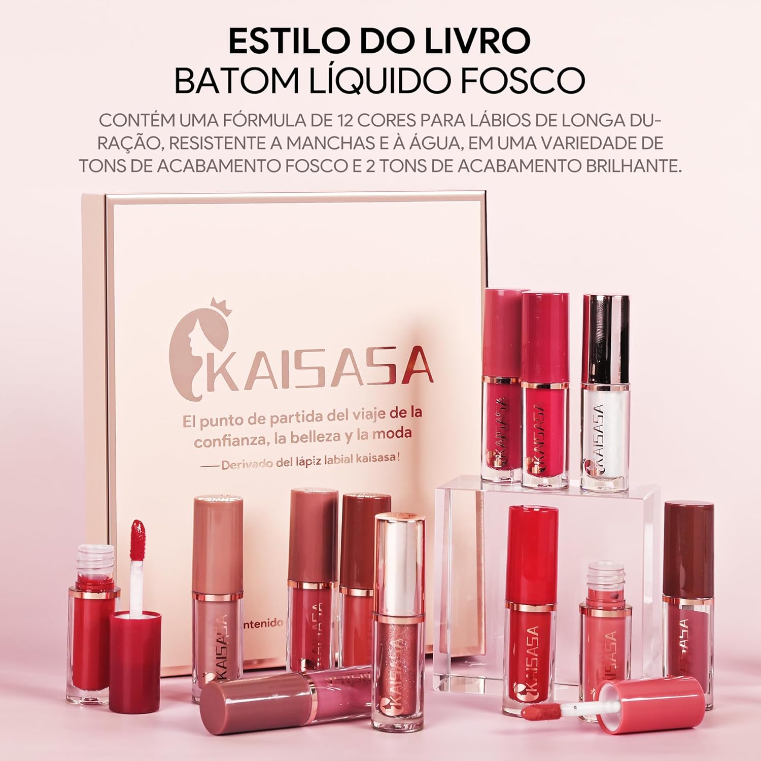 1. 12 Colors Batom Lip Liner Conjunto, brilho labial em tamanho real das cores mais populares. Encantador fosco, duradouro e à prova d’água, não gruda no copo, não desbota.