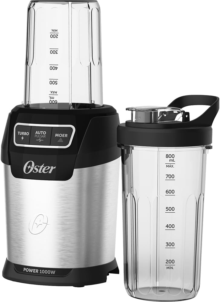 COM 1000W de potência e 6 lâminas de precisão projetadas para extrair o máximo de sabor e textura, o Personal Blender Oster é a escolha definitiva para levar suas receitas a outro nível