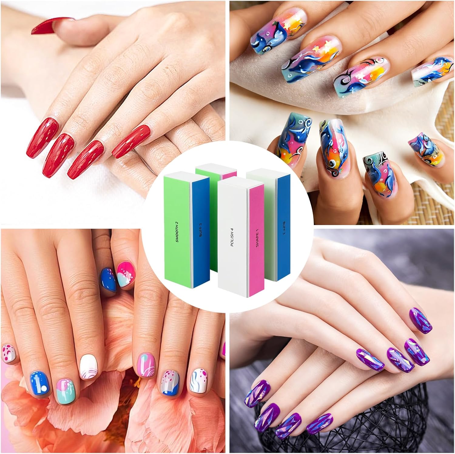 O que você receberá: um pacote de quatro blocos de tampão de unha, cada um com quatro funções. Sua satisfação é mais importante. Se você encontrar algum problema, estamos prontos para ajudar. Estamos comprometidos com a qualidade do produto de primeira linha e garantindo sua felicidade com nossas ferramentas de cuidados com as unhas.
