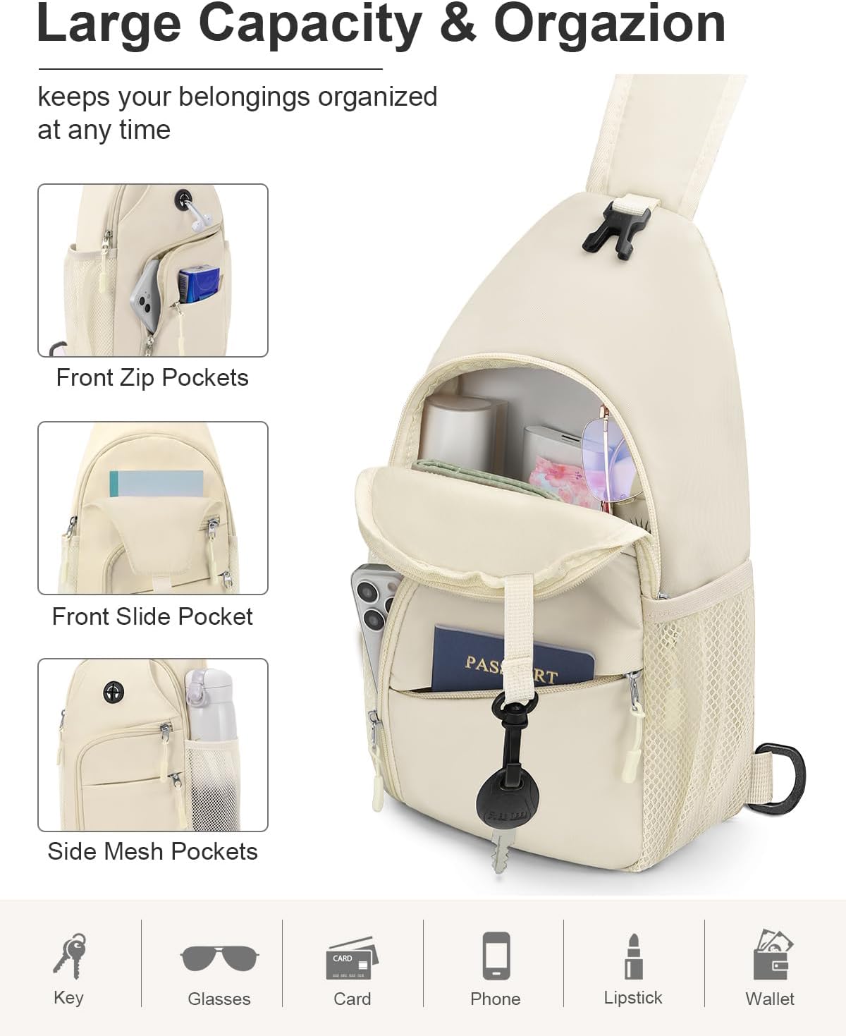 Bolsa tiracolo feminina à prova d’água com alça de ombro conversível para acampamento, caminhada