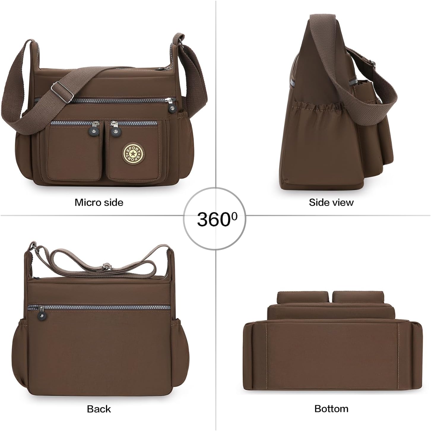 Material: Feita de forro de poliéster, nylon leve à prova d’água com zíperes clássicos, suave e fácil de abrir e fechar, esta bolsa de material de nylon é fácil de cuidar para limpar ou lavar à máquina. Dimensões externas: 28 x 20 x 12,7 cm (C x L x A) Ambos os tamanhos vêm com uma alça ajustável. Dois tamanhos de bolsas atendem às suas diferentes necessidades. Vários bolsos: Exterior: 2 bolsos laterais, 3 bolsos frontais com zíper, 1 bolso traseiro com zíper; Interior: 2 bolsos com zíper e dois bolsos abertos. Grande capacidade, esta bolsa contém bolsos internos e externos, fácil de guardar seu telefone, carteira, chaves, livros, guarda-chuva, estojo de óculos e assim por diante. Multifuncional: estilo moderno, esta bolsa pode ser usada como uma bolsa de mão, bolsa de ombro ou bolsa transversal com uma variedade de opções de armazenamento e recursos de organização, ideal para viagens, tarefas, compras e bolsa de fraldas para os pais em movimento.