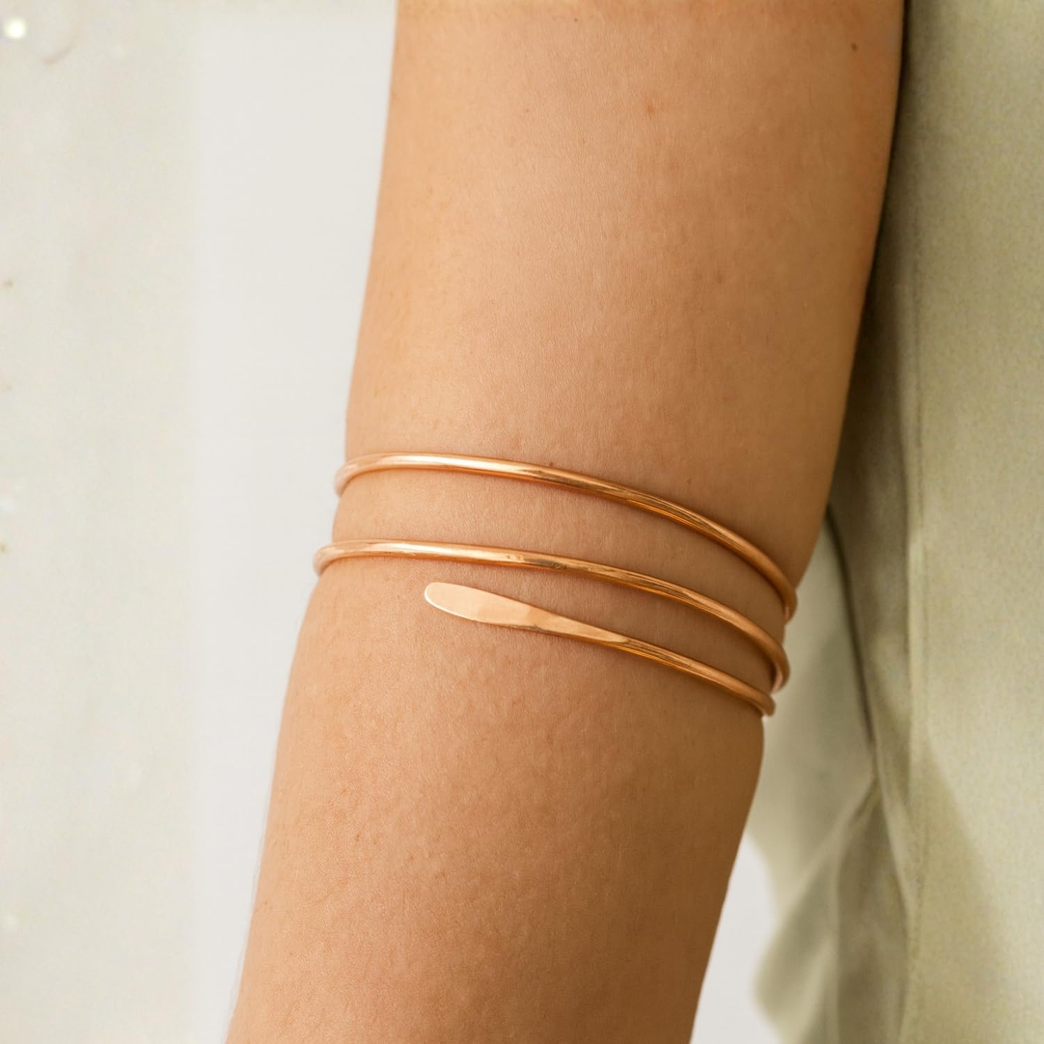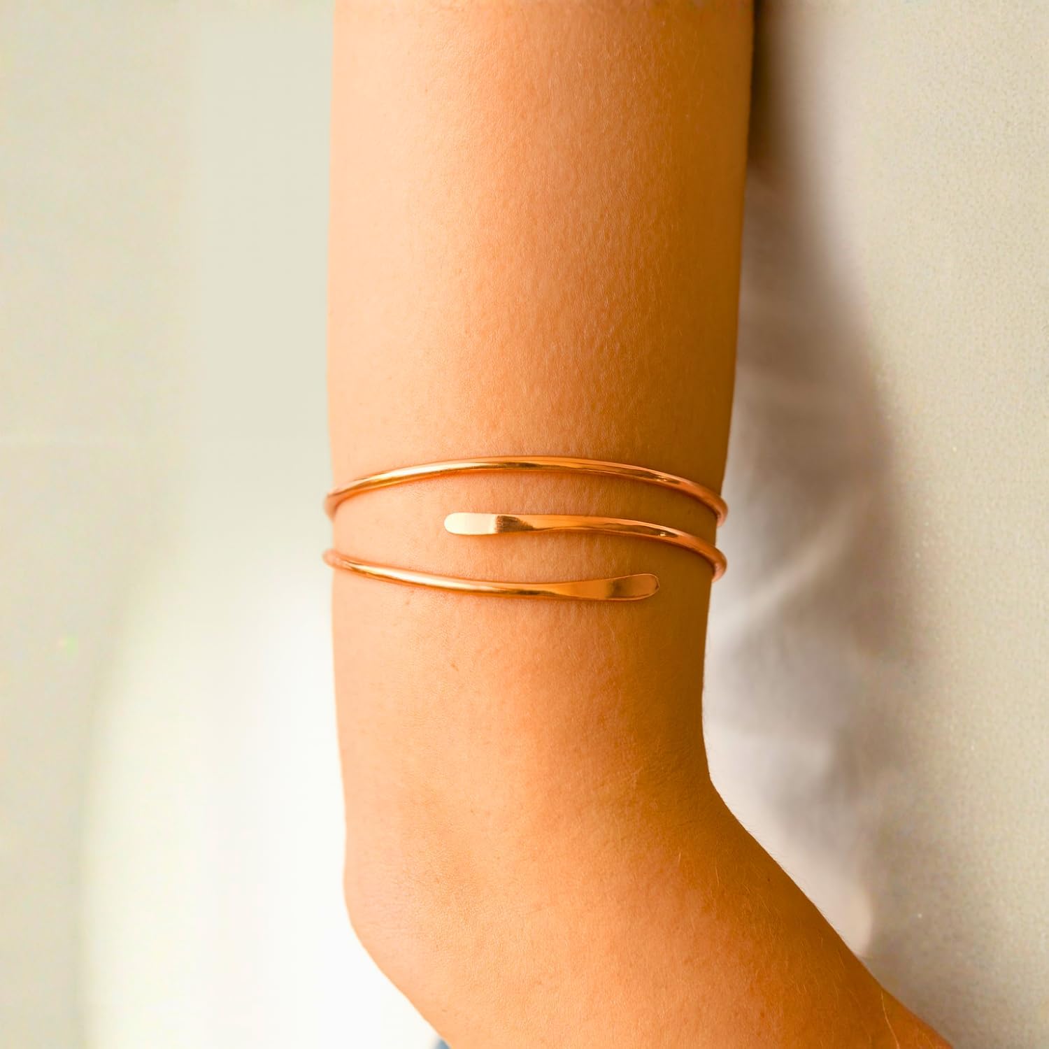 Bracelete Espiral Ajustável em Cobre Puro, Design Minimalista, Acabamento Rosé Gold