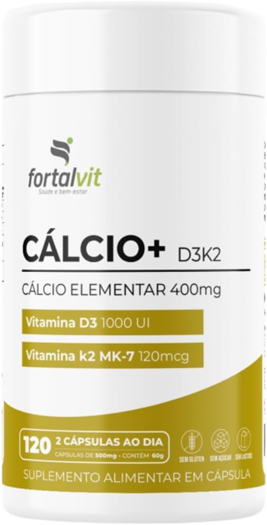 Cada cápsula do Suplemento Cálcio + D3K2 Fortalvit fornece 400mg de cálcio elementar, a quantidade ideal para suprir as necessidades diárias do organismo e garantir a saúde óssea.