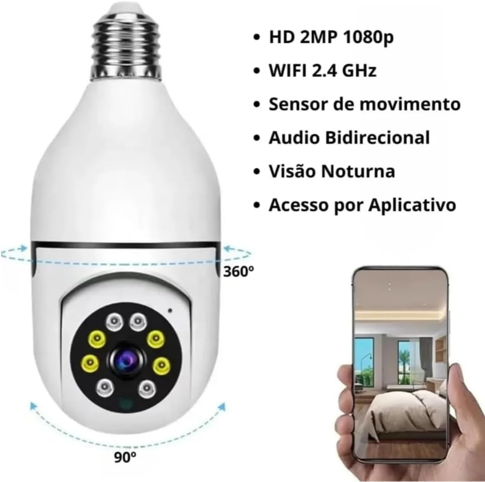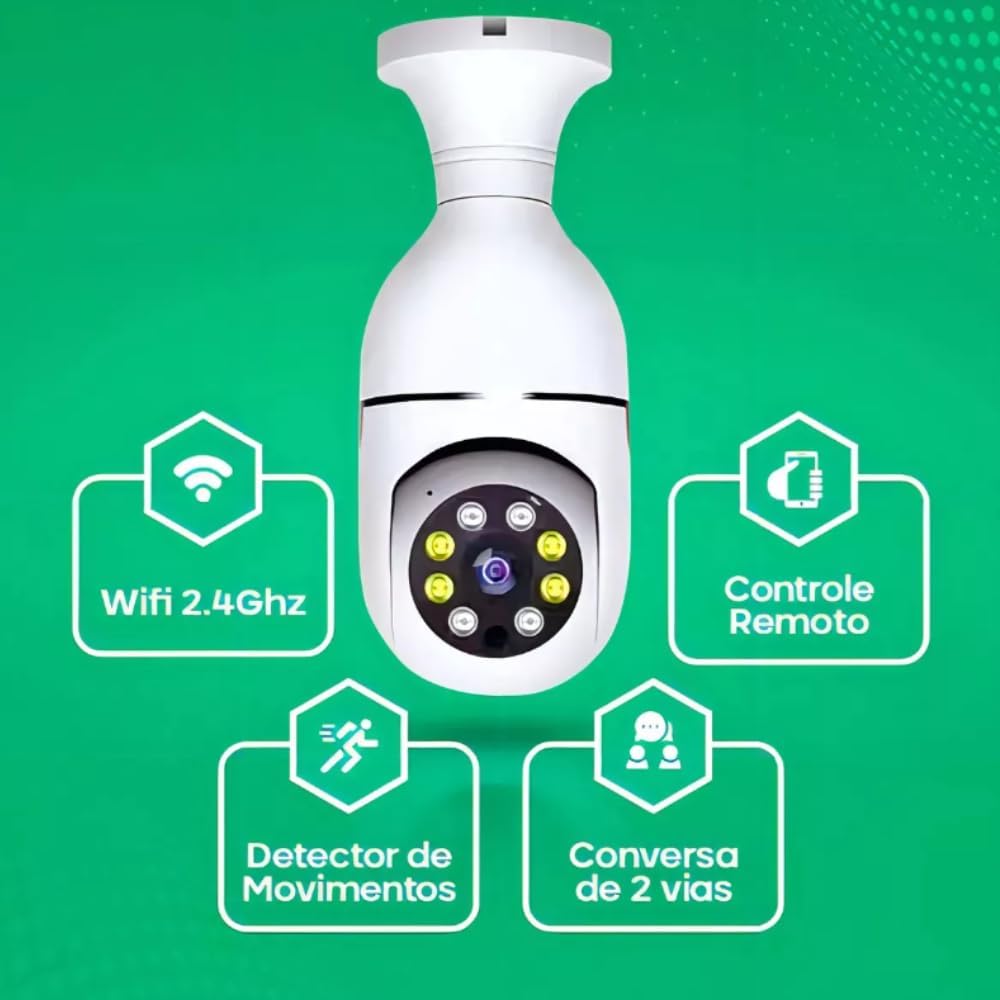 A Câmera de Segurança Lâmpada Wi-Fi 360° Premium é a solução perfeita para proteger sua casa, escritório ou loja de maneira discreta e inteligente.