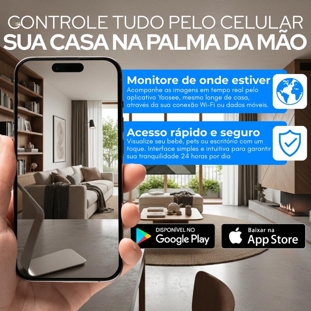 📷 Visualização Panorâmica 360° Sem Pontos Cegos: Cobertura completa com rotação horizontal de 355° e vertical de 105° – monitore cada canto do ambiente com visão total!
