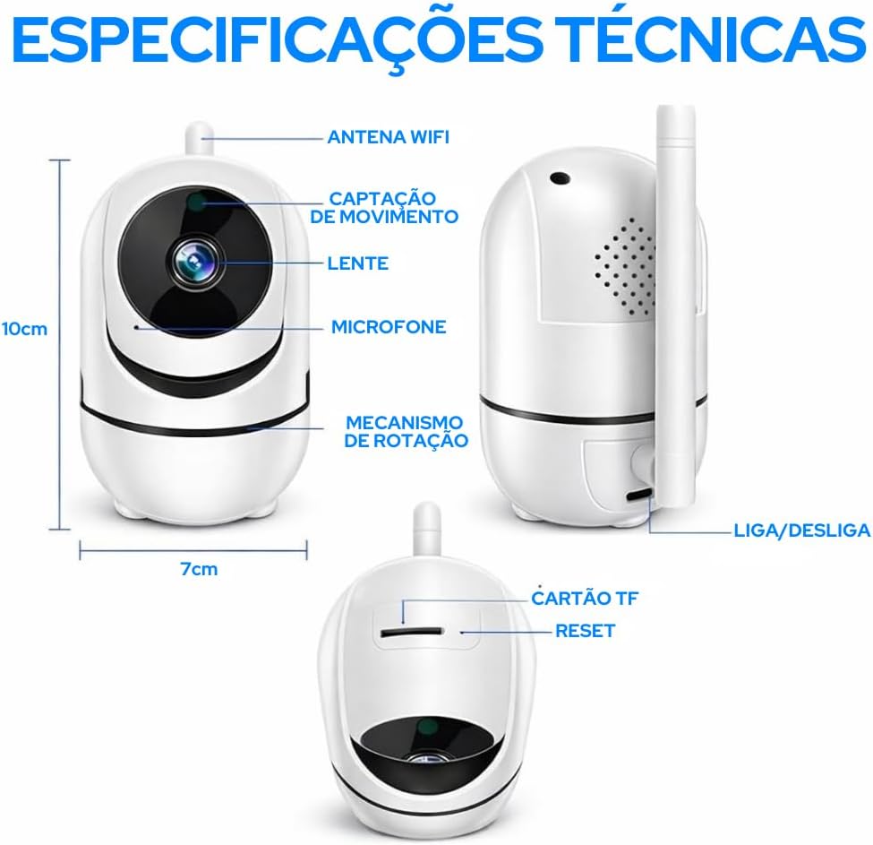 Câmera IP WiFi Giratória 1080p Premium, Visão Noturna, Detecção de Movimento, Microfone Infravermelho, Sem Fio com App, Estilo Babá Eletrônica – Premium