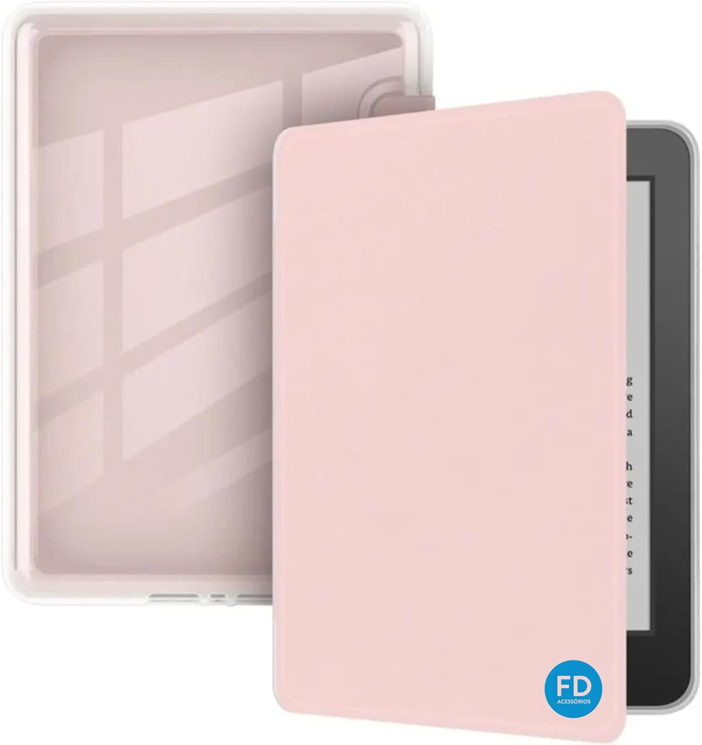 Capa Capinha Case para Kindle Paperwhite 12ª Geração e Kindle Colorsoft 7 Polegadas (SA569P, SA568B, SA58CB, SA59CP) com Função Ativa e Desativa Tela e Fundo em Acrílico – FD Acessórios (Rosa Claro)