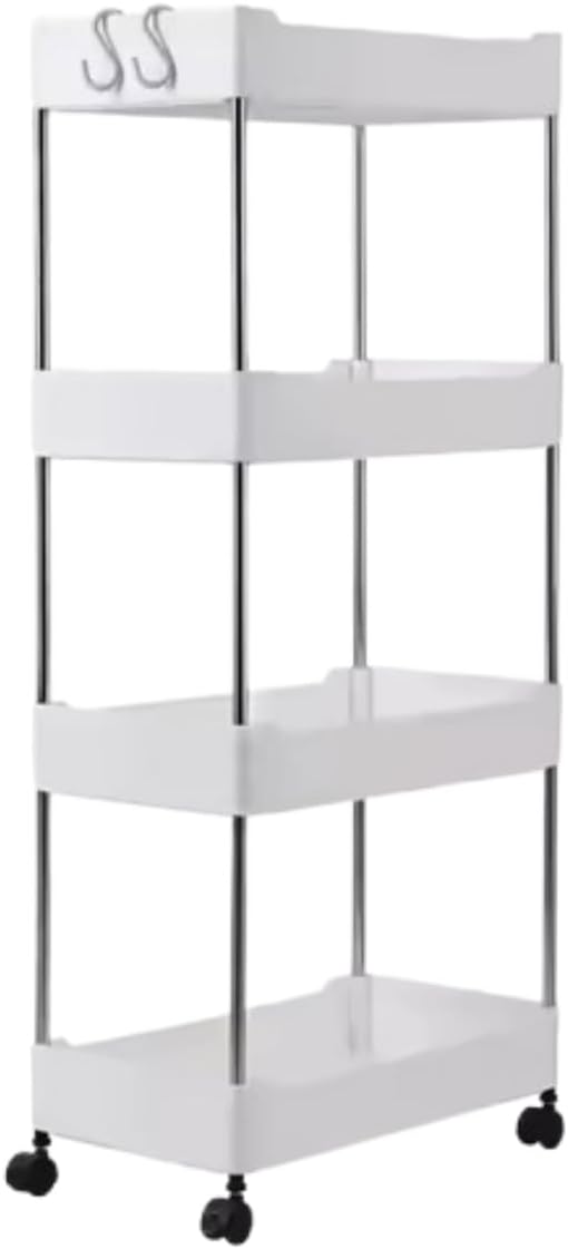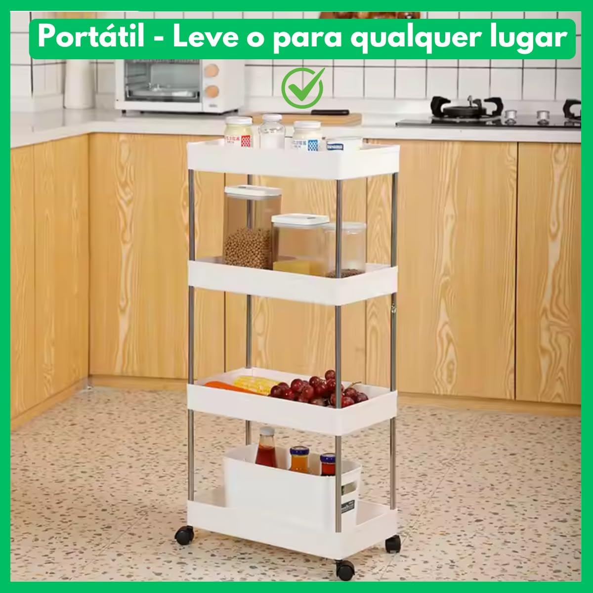 Carrinho Com Cesto Decorativo Organizador Móvel 4 Prateleiras Com Rodinha Auxiliar de Objetos Multiuso Cozinha Banheiro Quarto Lavanderia Resistente