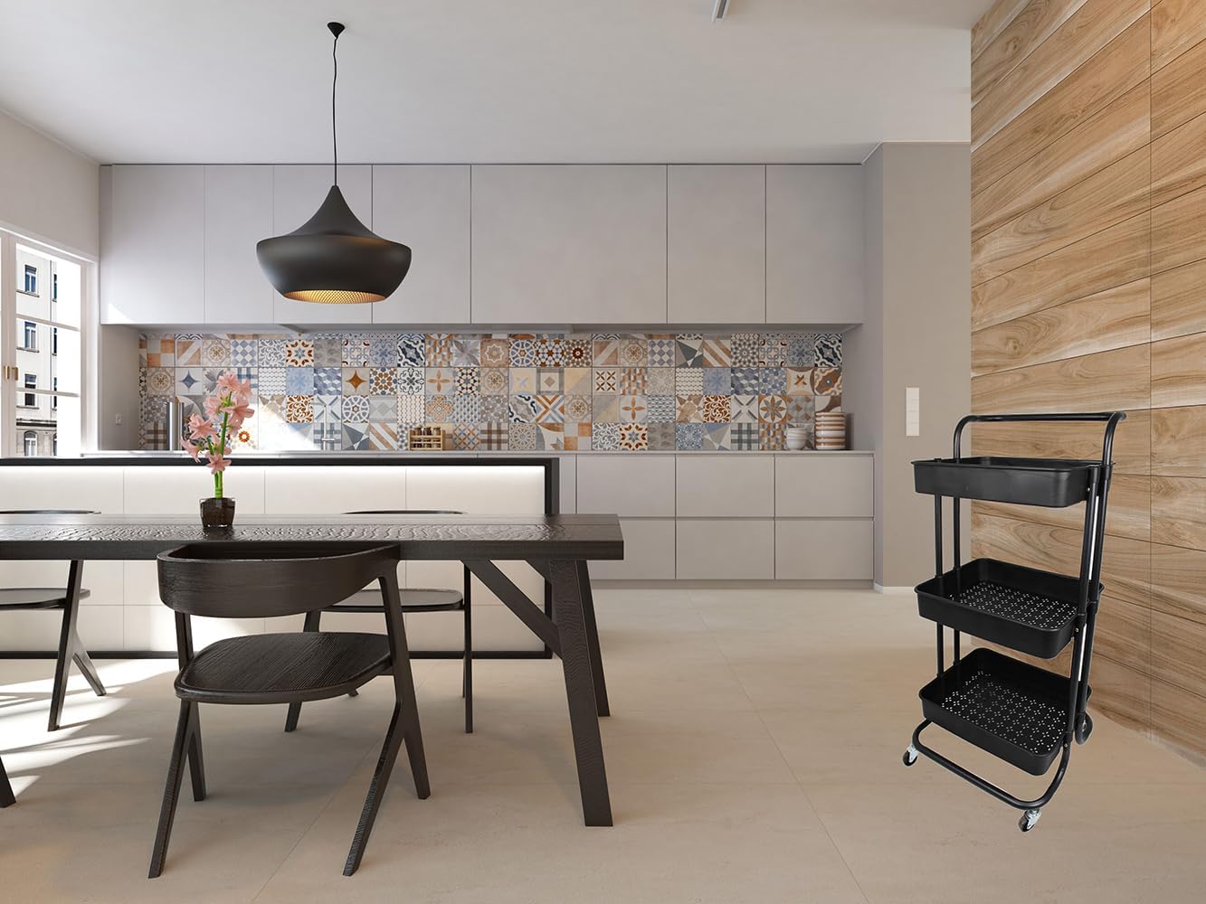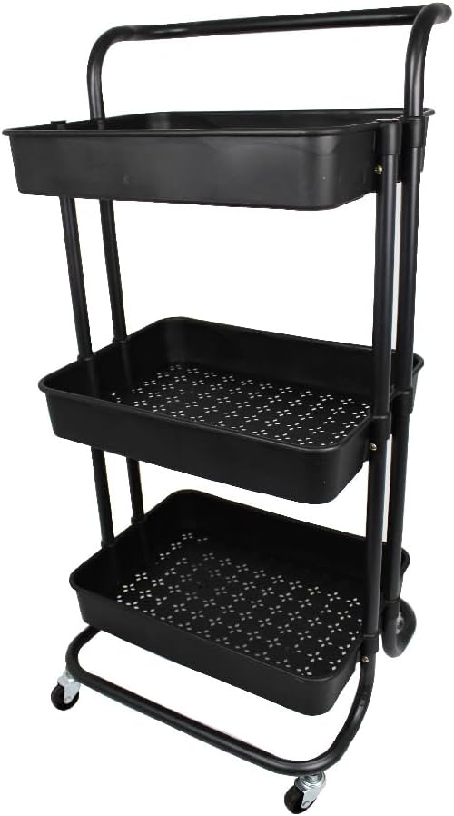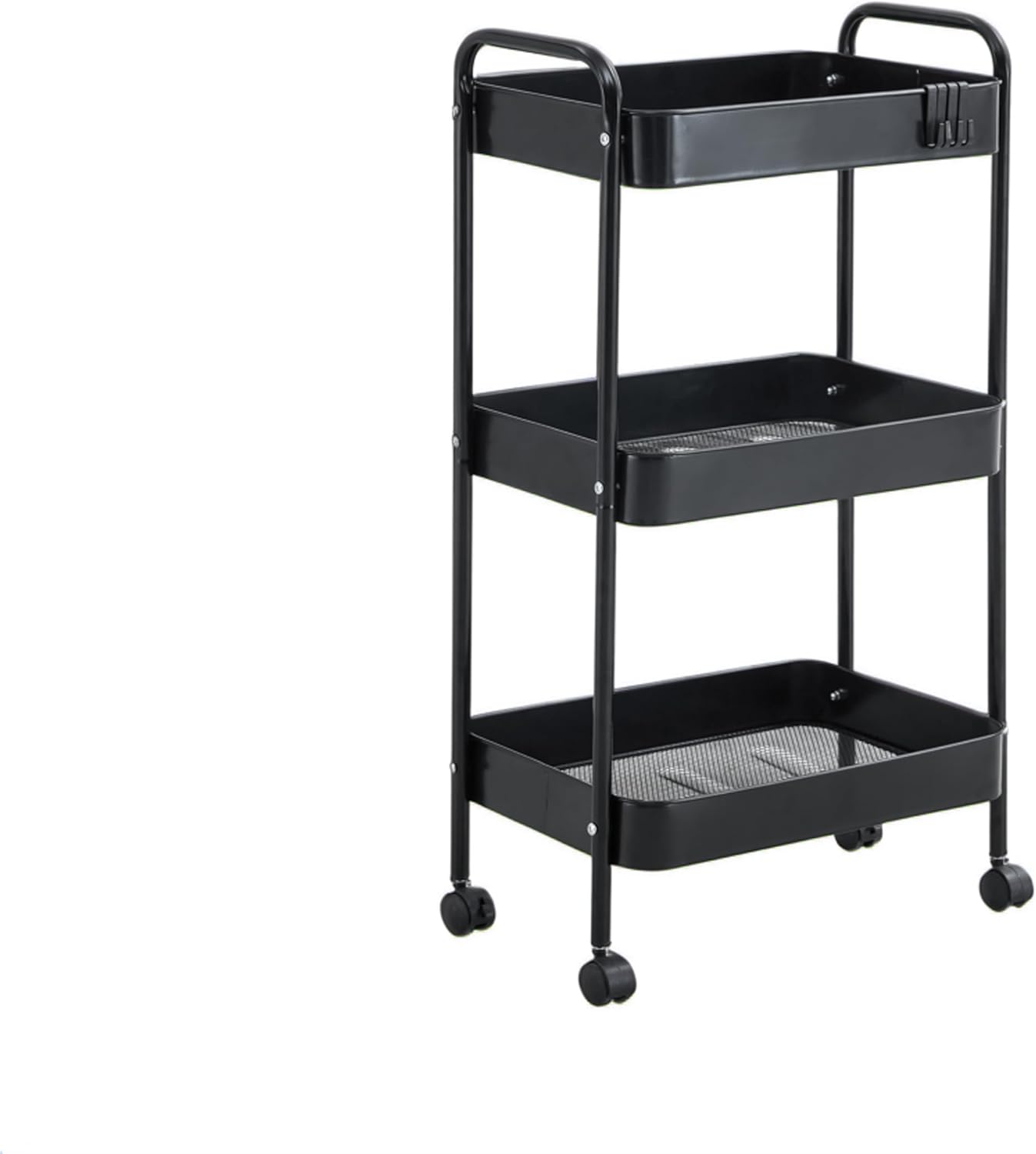 Carrinho Organizador Multiuso 3 Prateleiras Conthey Com Rodinhas, Estante, Preto, Facilidade, Mobilidade, Versatilidade para espaços como, Cozinhas, Escritórios ou Banheiros.