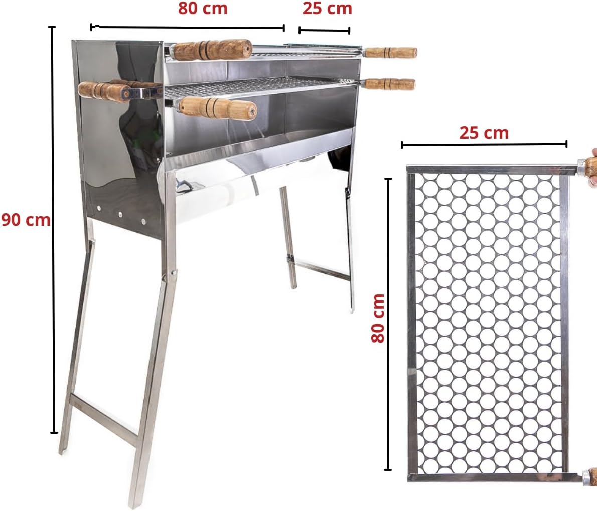 Com pernas dobráveis para facilitar o transporte e armazenamento, e pegadores laterais de madeira para maior segurança e conforto, a I-80 oferece funcionalidade e design compacto. Versátil e robusta, ela é a escolha certa para armadores caseiros e profissionais que valorizam desempenho e praticidade no churrasco.