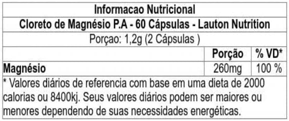 Cloreto De Magnésio 500mg Vegan 60 Capsulas | Lauton Nutrition