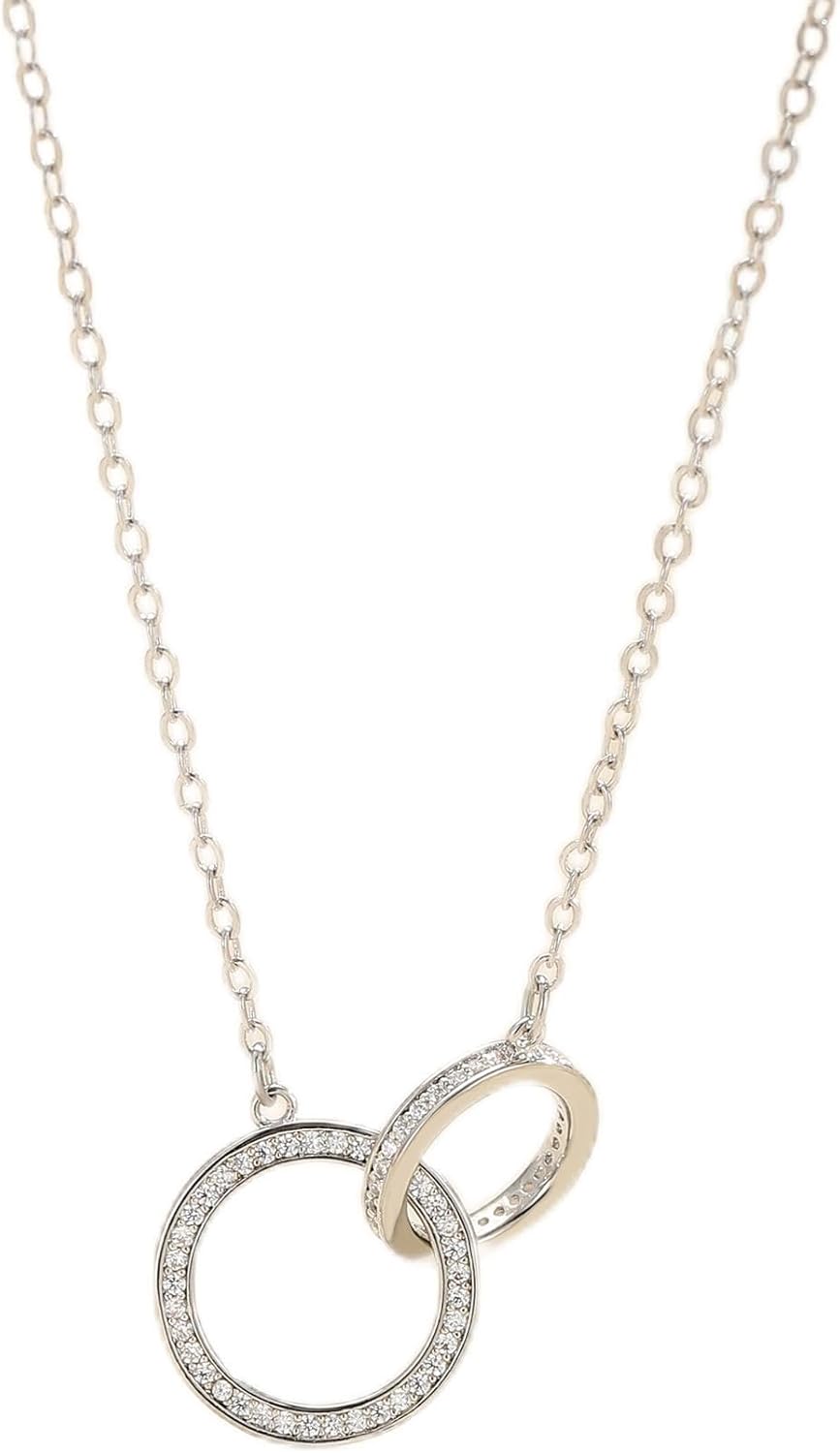 Colar feminino banhado a ouro 14K – Gargantilha com pingente de dois círculos delicados e infinitos, antimanchas, hipoalergênico, impermeável, presentes de aniversário personalizados, joias modernas