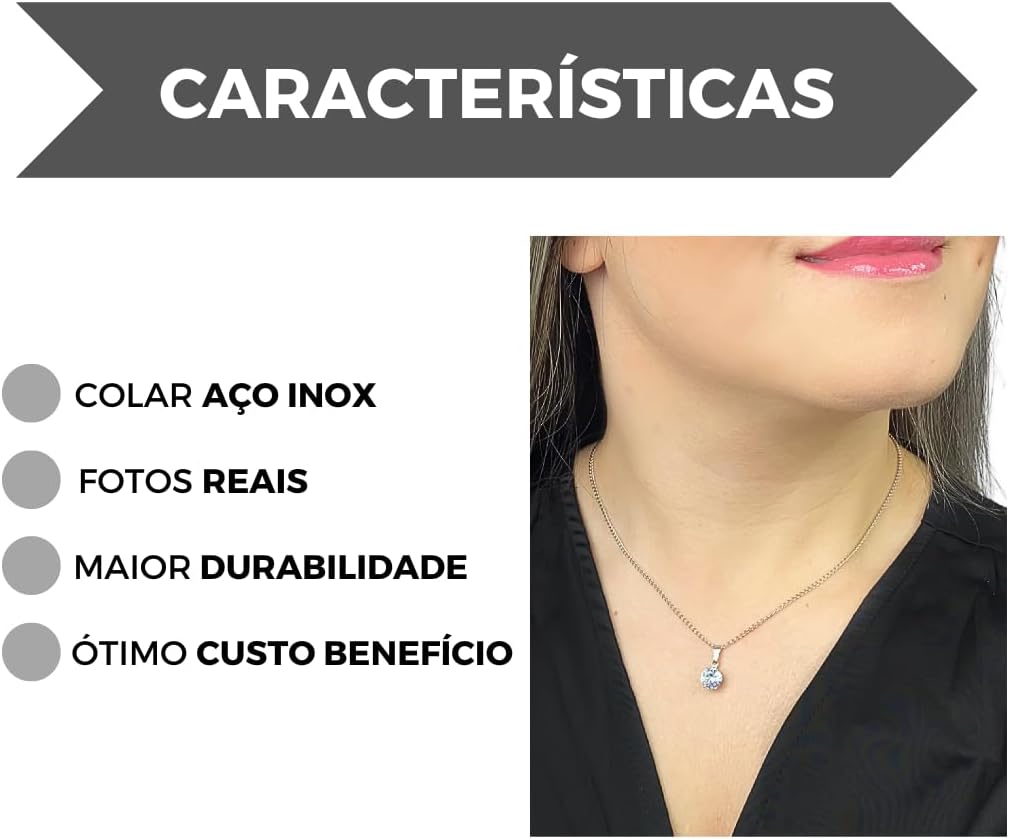 Colar Gargantilha Feminino Pingente Ponto De Luz Cristal Em Aço Inox
