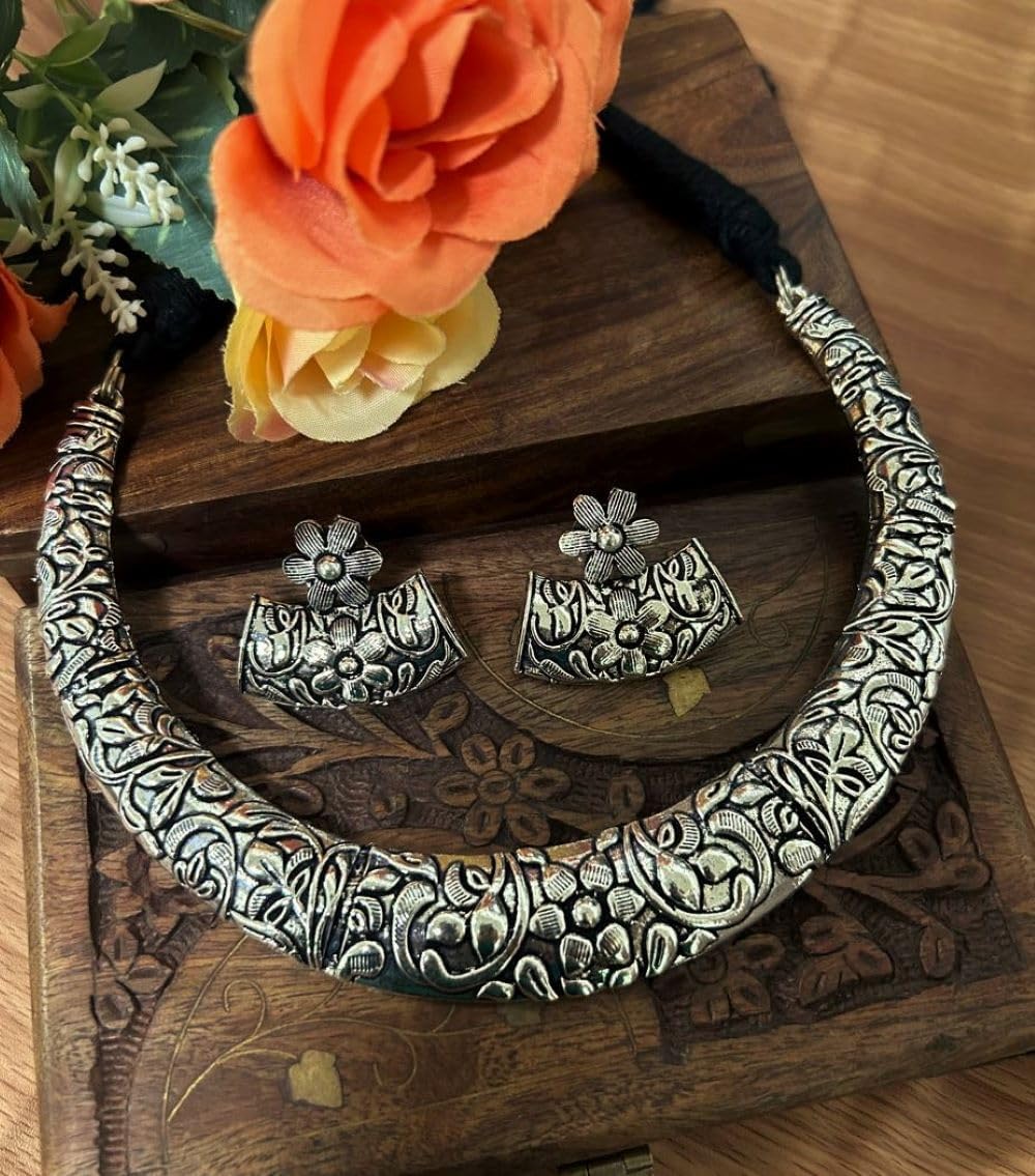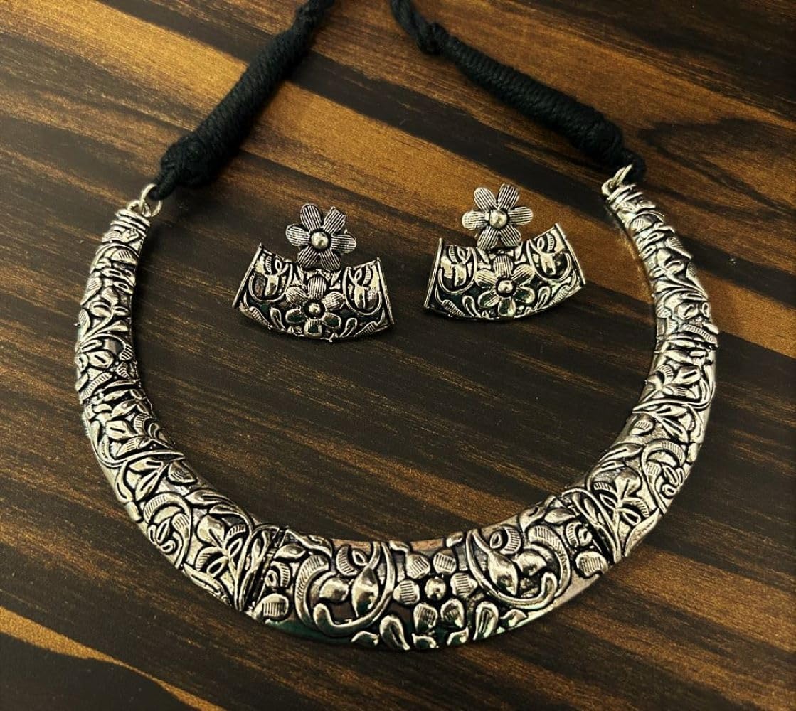 Colar gargantilha indiana afegã hasli prata oxidada tribal boho declaração kutchi joias femininas