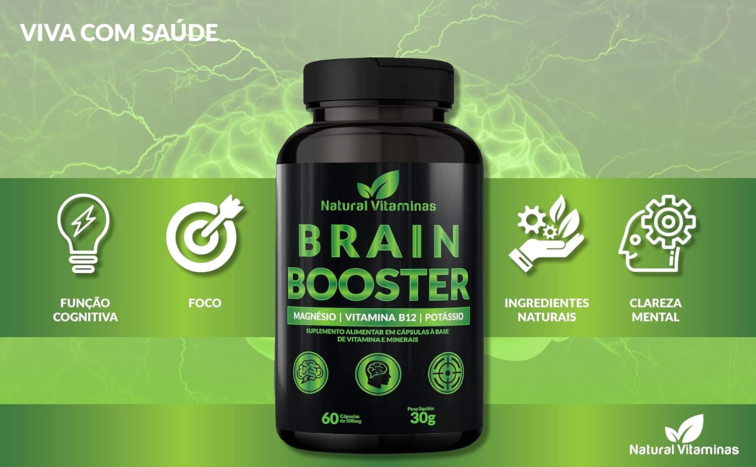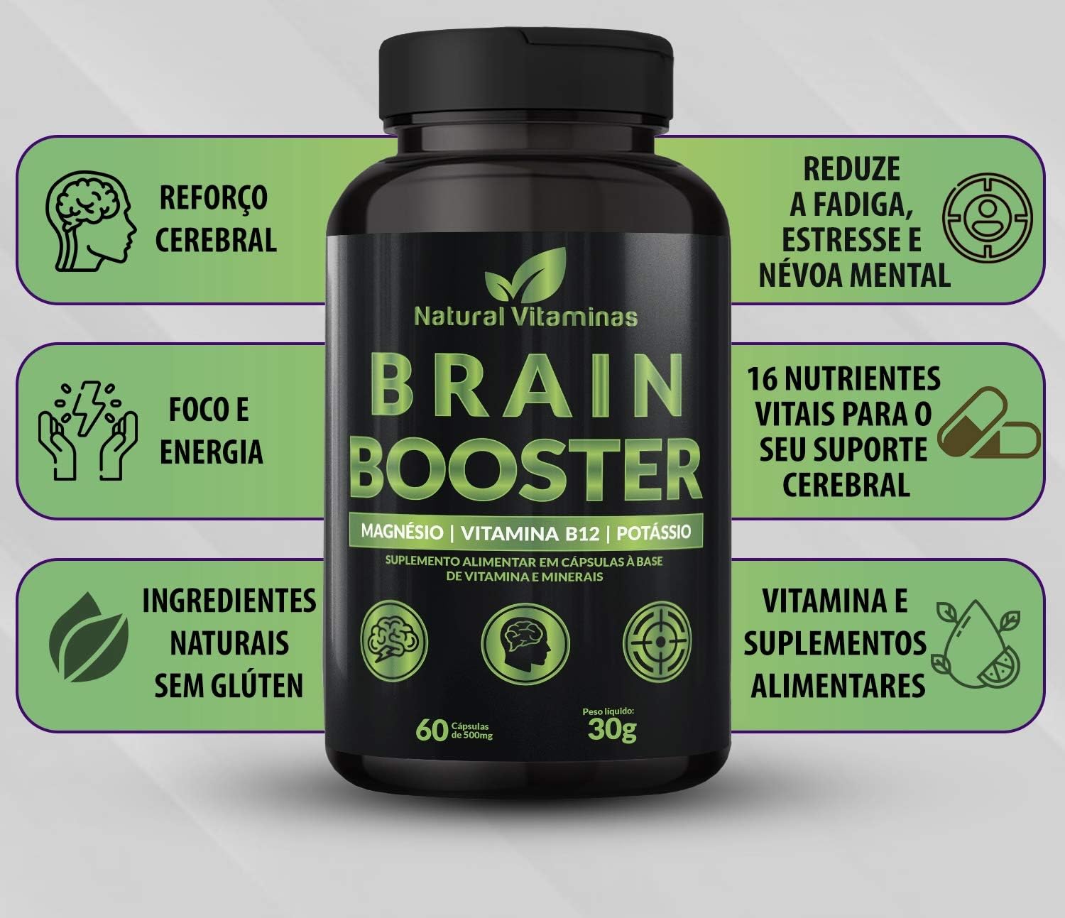 Complexo B, Biotina, Magnésio, Cálcio, Zinco e mais Vitaminas Bain Booster – 1 Pote com 60 Cápsulas de 650mg