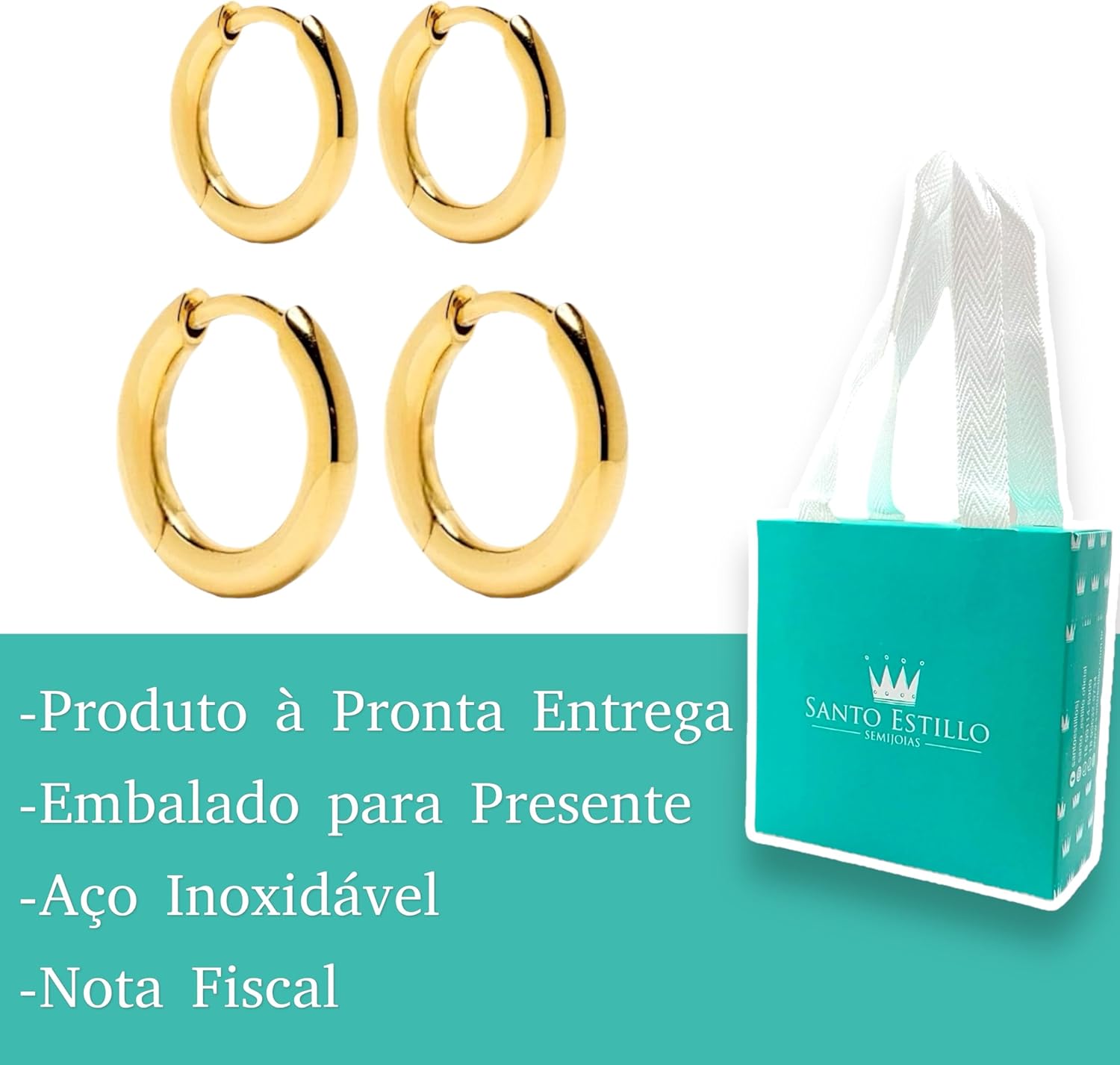A Santo Estillo Semijoias atua no mercado há 20 anos, sendo especialista no ramo. Estamos representados em de 12 cidades do Estado São Paulo, Mato Grosso do Sul e Paraná. Nossas peças recebem banho em ouro 18k, ródio branco e negro; com a mais atual tecnologia do mercado, oferecendo aos nossos clientes produtos de alta qualidade, transformando preciosos detalhes em peças marcantes. Obrigada por nos permitir fazer parte da suas escolhas!!! Sua encomenda vai embalada para presente! ************************PRODUTO PRONTA ENTREGA!!************************ Acompanha Nota Fiscal vai embalado para presente Escapulario unissex em aço inoxidável 316L Brinco Argolinha Primeiro e Segundo Furo em Aço inox 316L alta qualidade nas cores Dourado e Prata Aço inoxidável tecnologia antialérgico. Aço inox 316L. Brinco Argoinha Primeiro Furo Diâmetro: 17 mm Peso: 3 g Brinco Argolinha Segundo Furo Diâmetro: 15 mm Peso: 2,7 g Vantagens de produtos em Aço Inox!!! Segue abaixo algumas de suas Vantagens : Antialérgico; Possui alta resistência à corrosão e oxidação; Não escurece; Não enferruja; É mais rígida que a prata; Não risca nem amassa; Possui alta durabilidade e brilho; É fácil de limpar; Ideal para quem pratica esporte, pois não mancha com o suor e água salgada. Os aços inox 316L não oxidam e não descascam por isso garantimos a sua qualidade. O produto pode ser usado por tempo indeterminado junto ao corpo e em lugares propícios que causam corrosão e oxidação. Além de tudo o aço inox 316L é antialérgico e não causa problemas a sua pele. Sua aparência, Seu Brilho são similares a produtos em ouro e prata causando um efeito semelhante ao ser usado. Apesar de todas as boas especificações do produto ser positivas não para por aqui, Seu custo benefício é incomparável. Aguardamos a sua compra e estamos disponíveis para quaisquer dúvida