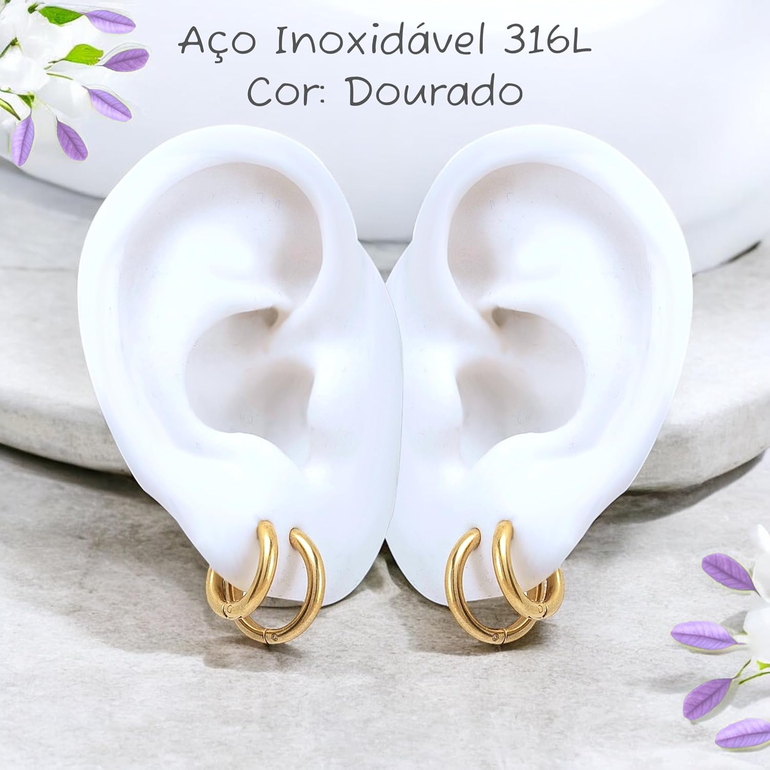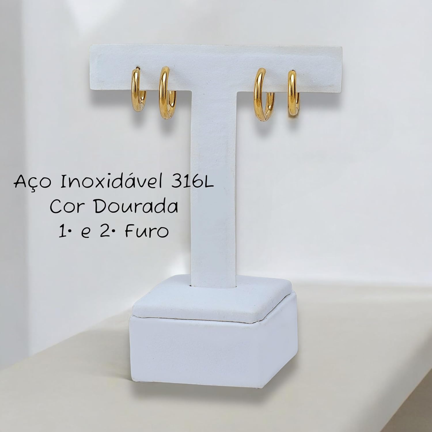 Conjunto Brinco Argola Feminina Primeiro e Segundo Furo em Aço inoxidável 316l Antialérgico Cor Dourado ou Prata