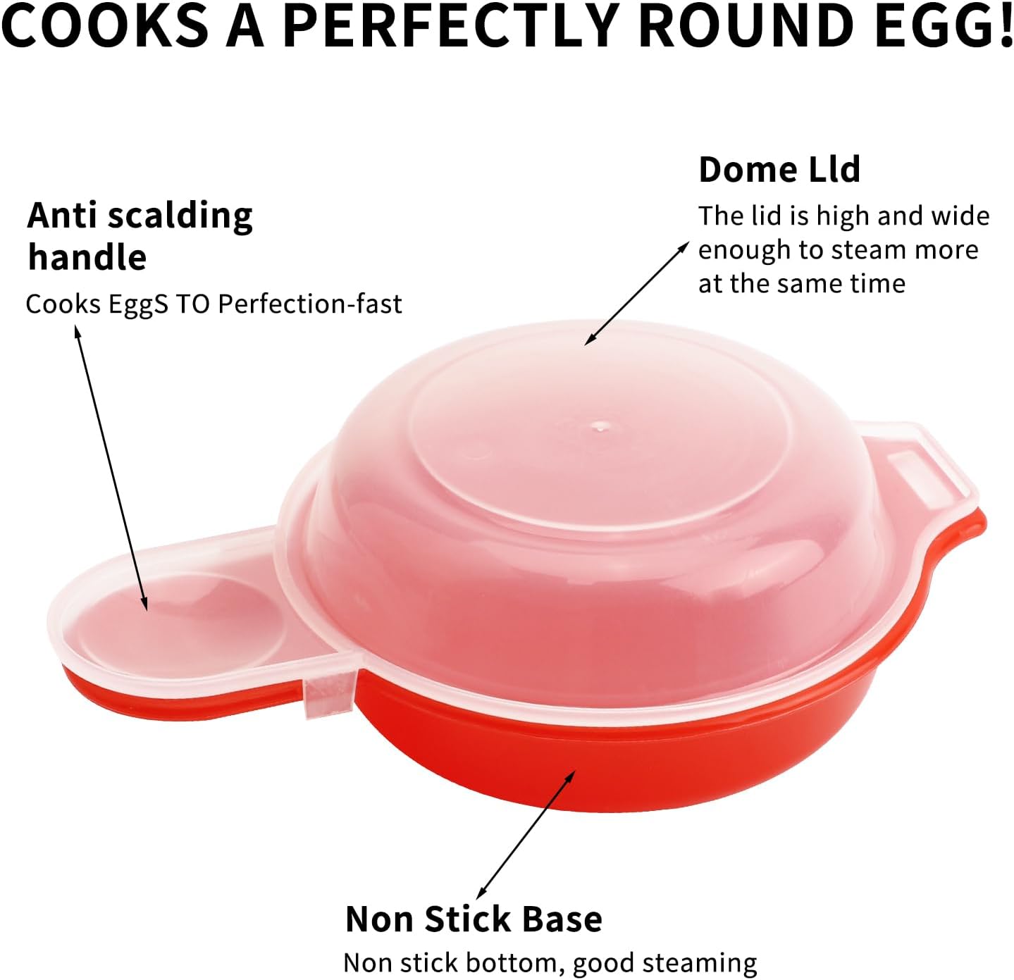 Conjunto de 2 panelas de ovo para micro-ondas, omelete de ovo rápido, sanduicheira de café da manhã, lavável na lava-louças, utensílios de cozinha (vermelho)