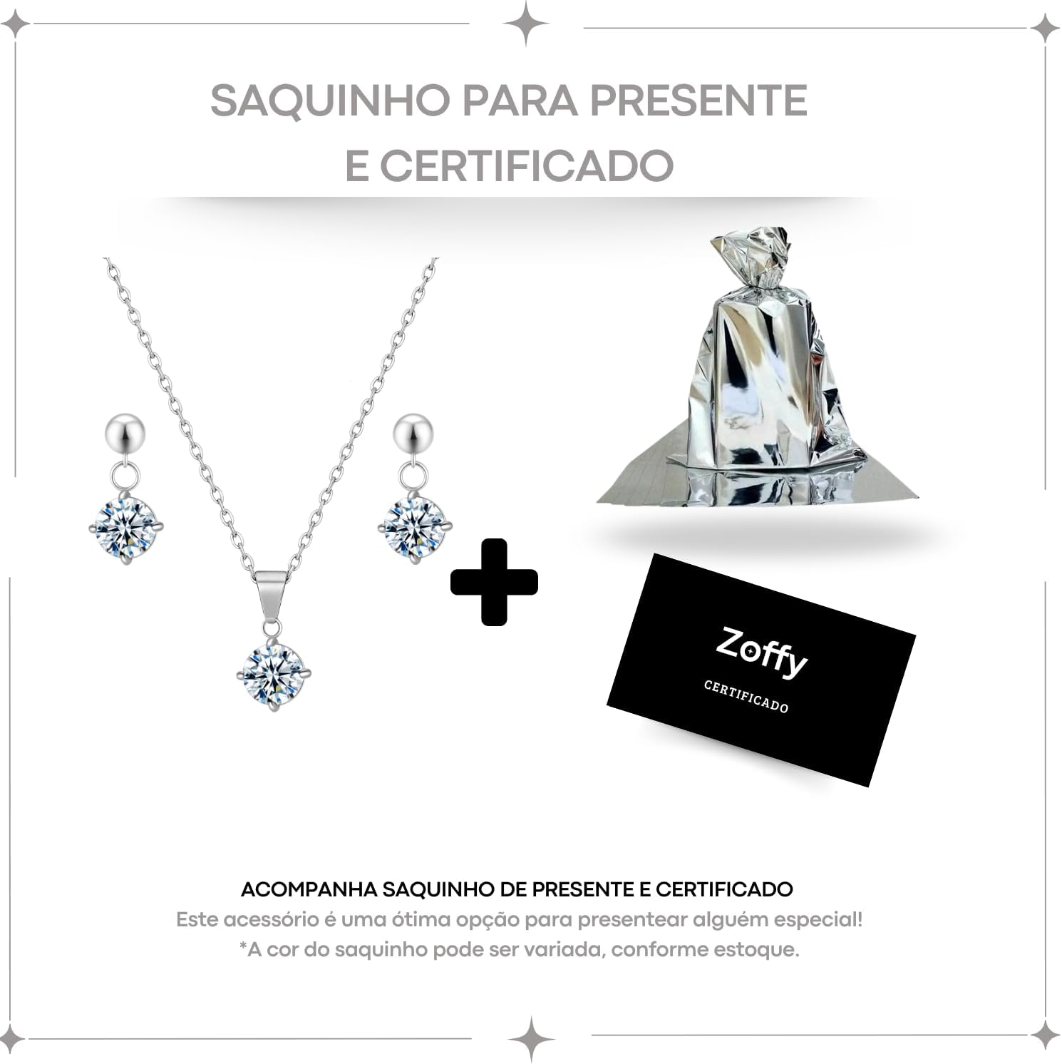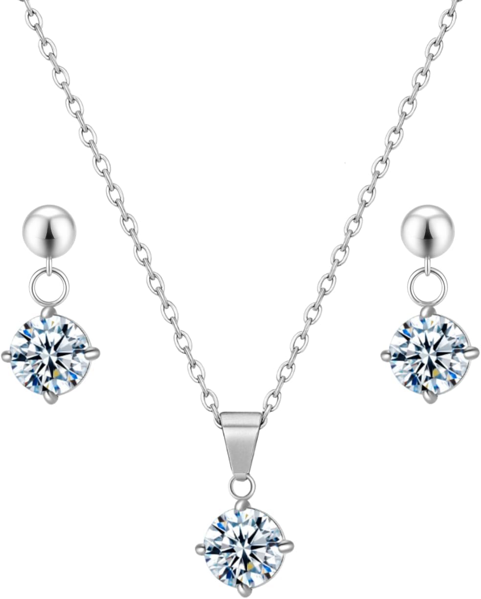 Conjunto Feminino Colar E Brinco Aço Inox Ponto De Luz Branco Azul Vermelho Para Presente