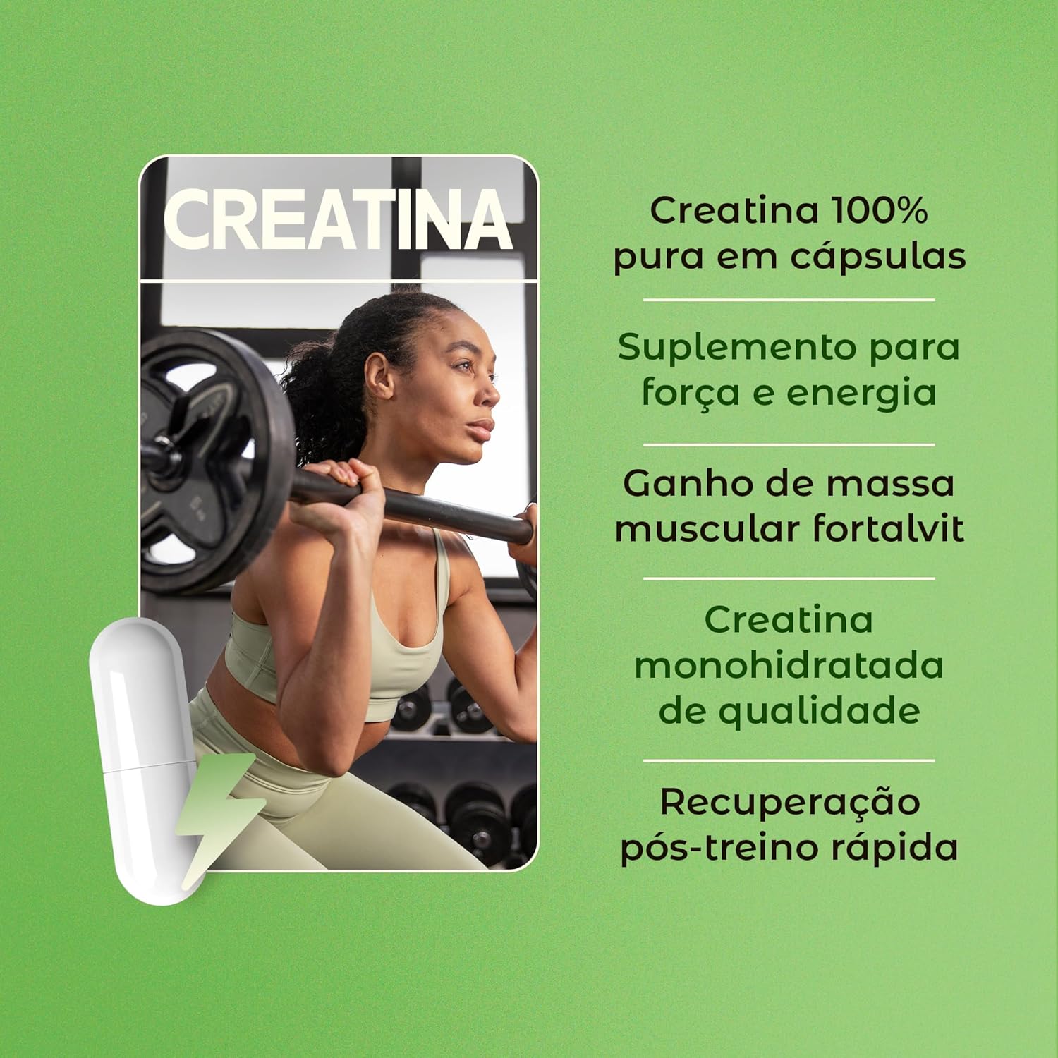 Experimente a praticidade da creatina em cápsulas! Com a Fortalvit, você garante a dose exata de creatina em cada porção, sem o incômodo de preparar o pó.