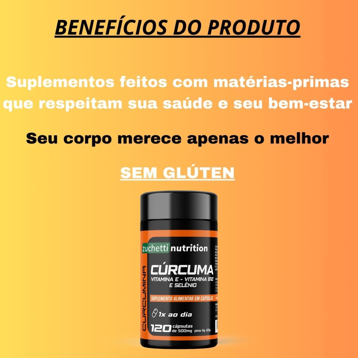 Formula avançada, com Extrato de rizomas de Cúrcuma Longa, Melhor Matéria Prima, Vitamina E, Vitamina B12, Selênio.