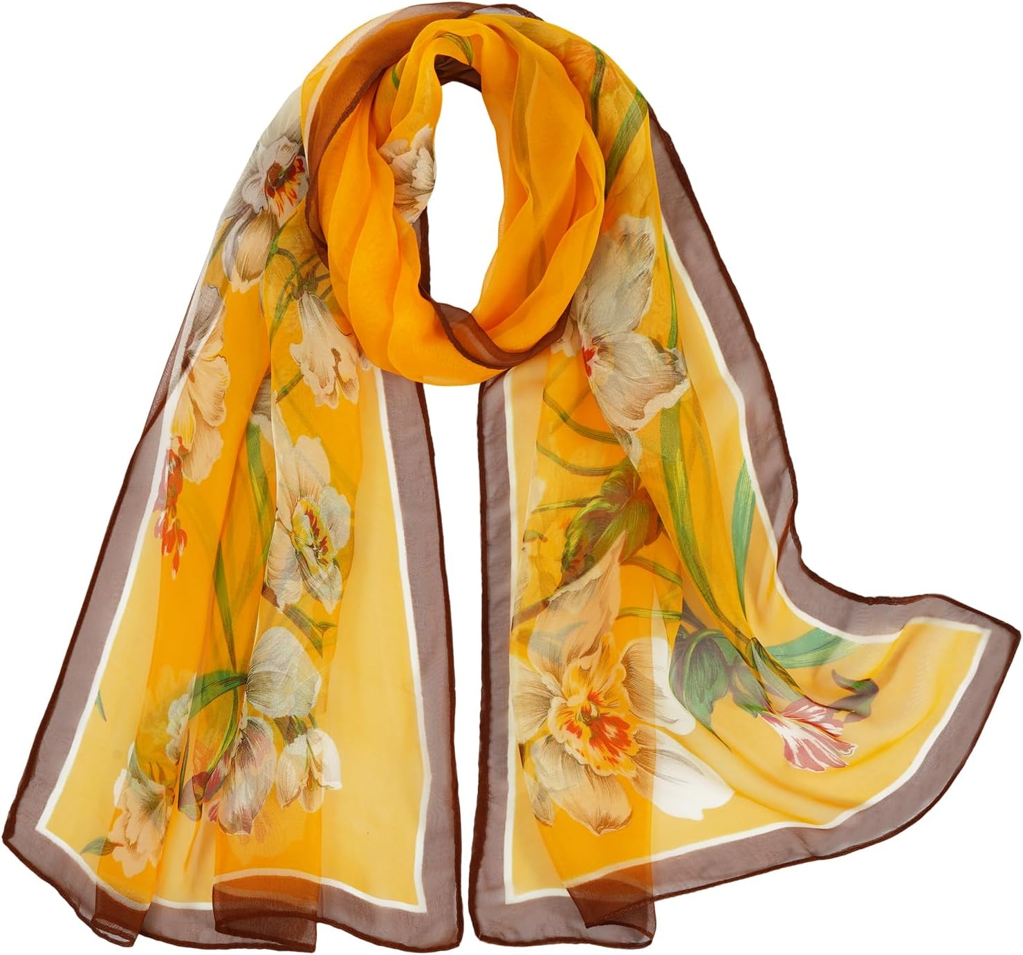 Um cachecol requintado pode iluminar sua roupa. Seja para um visual diário ou para ocasiões importantes como casamentos ou jantares, pode combinar perfeitamente. Cachecóis transparentes de chiffon são um item essencial no seu guarda-roupa.