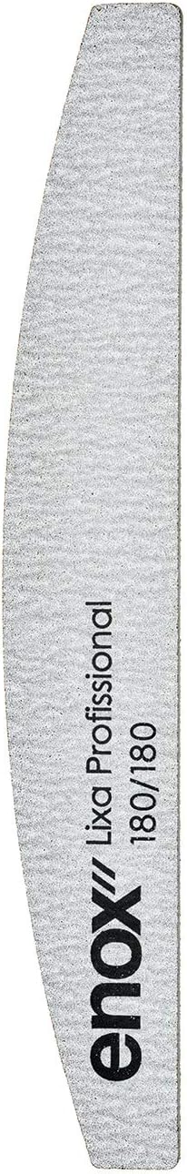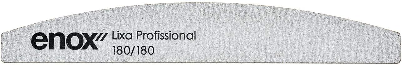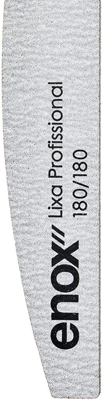 Lixa profissional enox dupla face com abrasividade média (granulação 180/180), em formato meia lua, contendo 1 unidade.