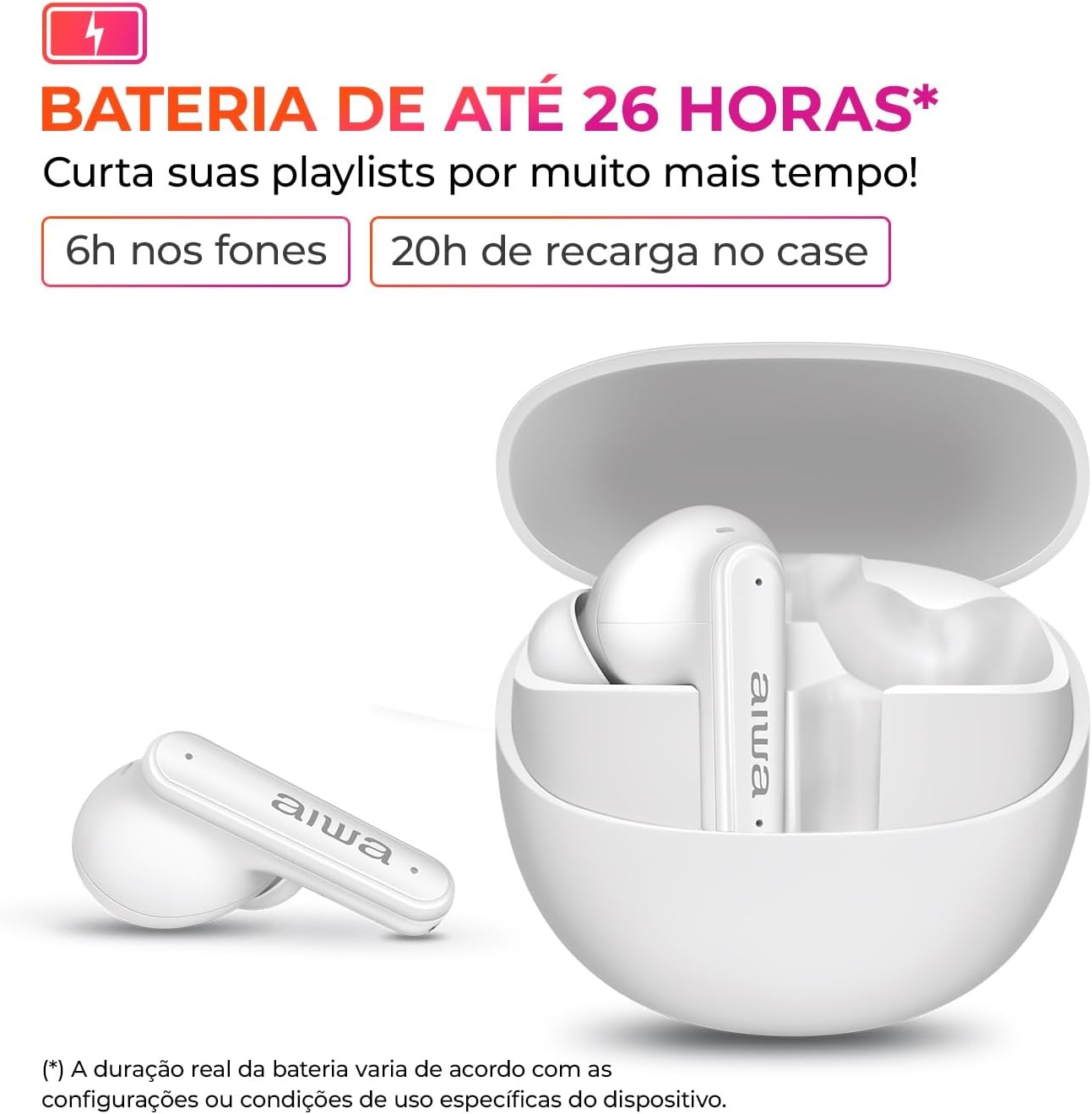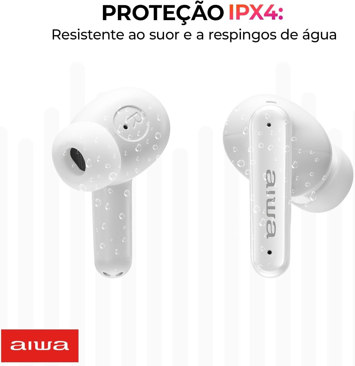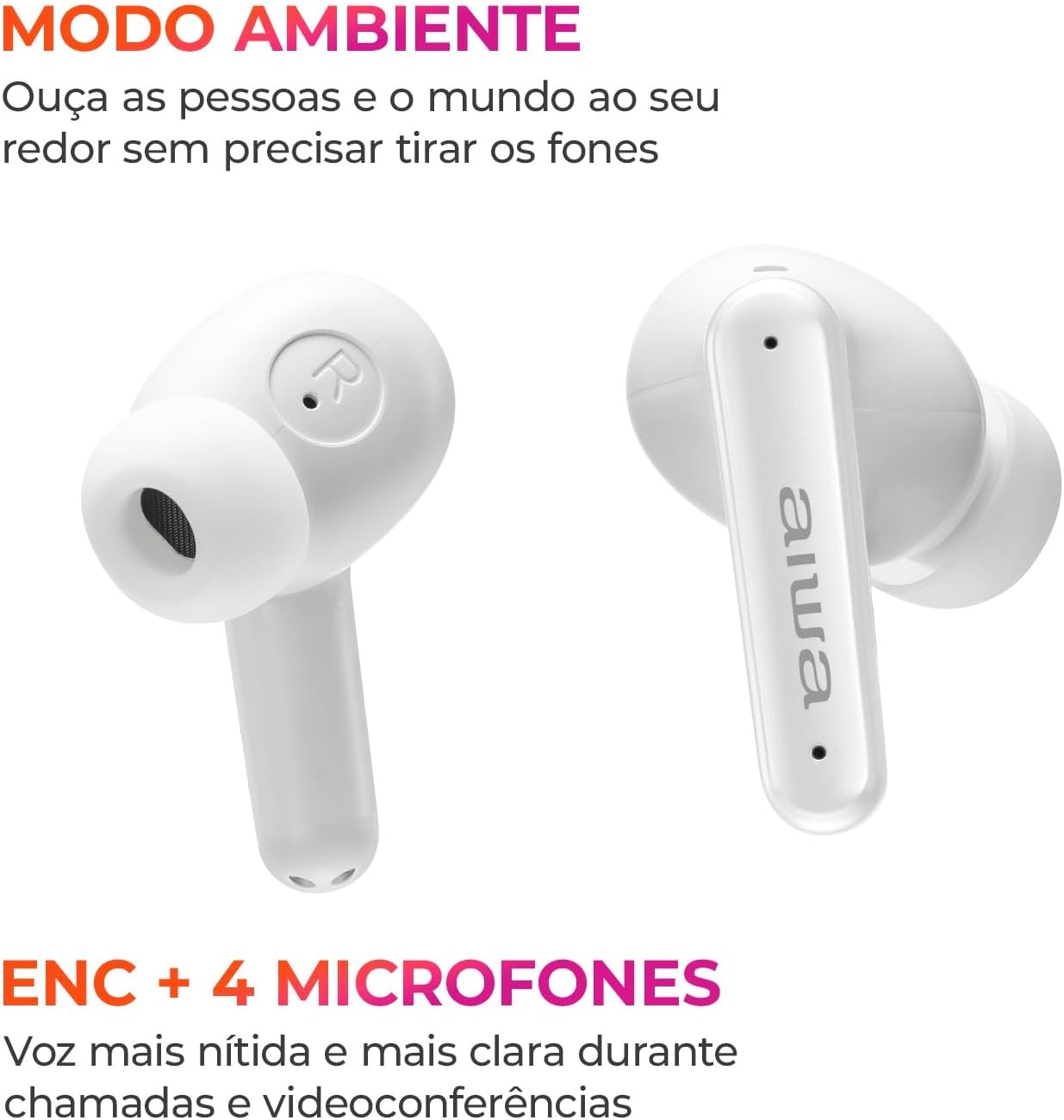 Fone de Ouvido Eardbud AIWA AWS-EB-04-W Bluetooth IPX4 ANC 26 Horas de bateria