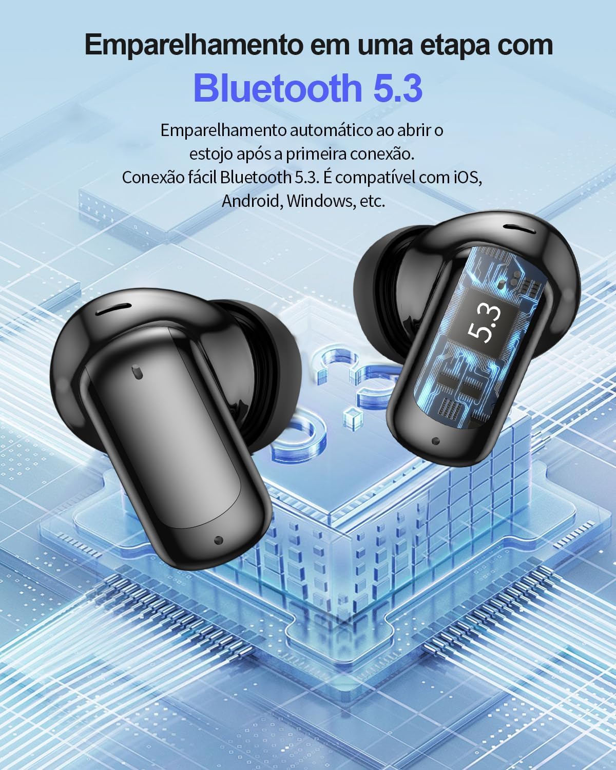 Tecnologia Bluetooth 5.3: Os fones de ouvido sem fio usam o chipset Bluetooth 5.3. Há uma transmissão de sinal mais rápida e estável e atingiu com sucesso baixa latência sem interrupção. Com um alcance de até 15 m, esteja você em casa, no escritório ou na estrada, você não precisa se preocupar com a desconexão dos fones de ouvido Bluetooth. Emparelhamento automático e compatível com vários dispositivos.