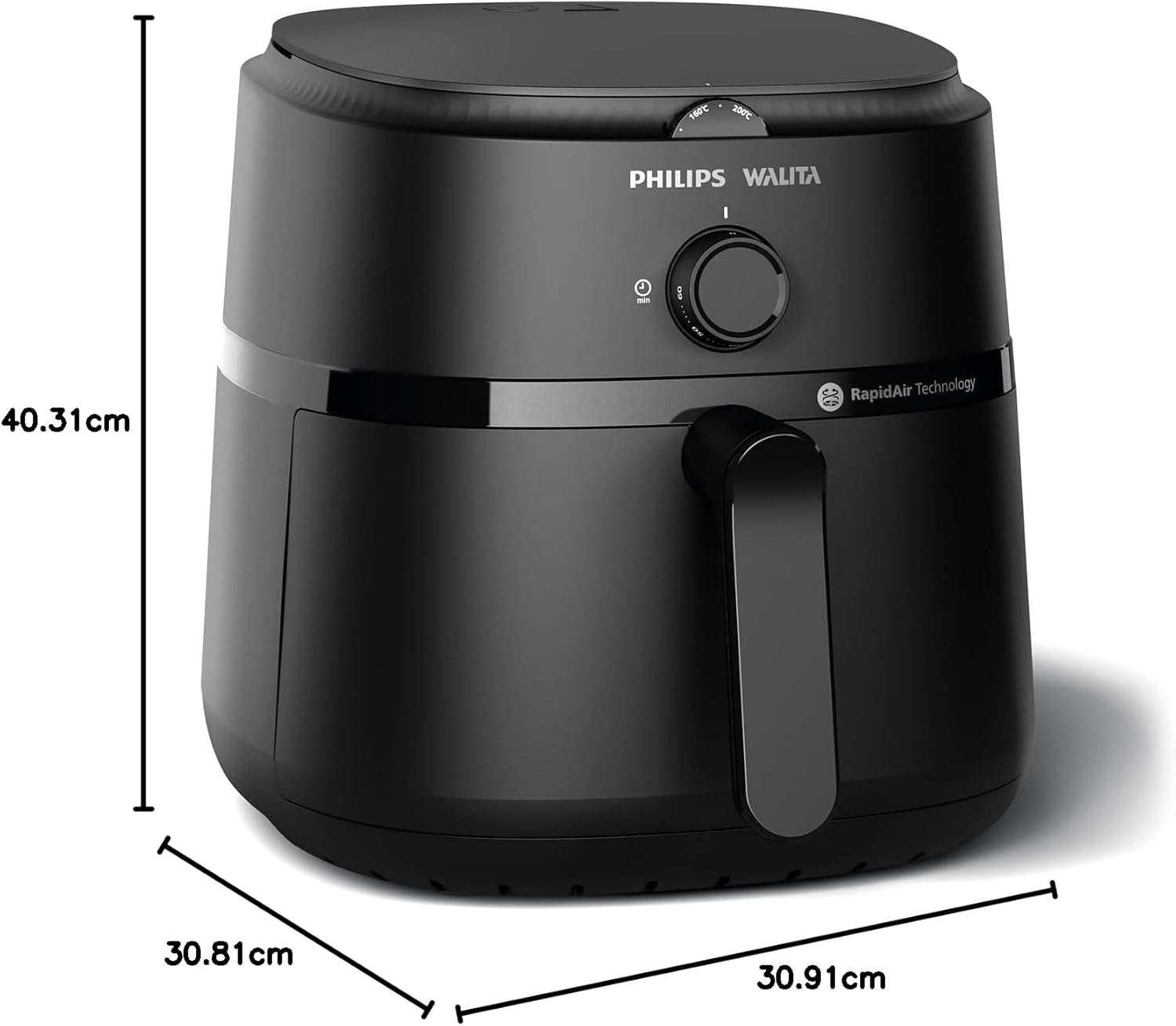 Airfryer Série 1000 XL Philips Walita, com grelha removível: fácil de limpar e mais espaço para preparar as suas receitas! A única com Tecnologia RapidAir patenteada que garante o fluxo de ar por todos os lados, o cozimento mais rápido e uniforme, deixando os alimentos macios por dentro e crocantes por fora. São 1700W e capacidade total e útil de 6,2L (1,2kg). Com ajuste de temperatura de 80 a 200 graus, timer de 60 minutos e desligamento automático. Fácil de lavar: Com grelha removível antiaderente e outras peças removíveis, preparadas para a máquina de lavar. Inspire-se com + de 500 receitas no App HomeID