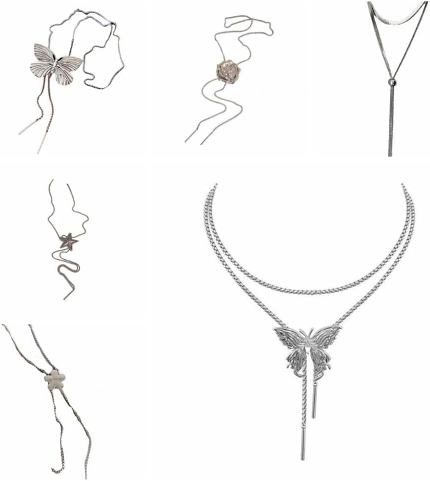 Gargantilha feminina de estrela chique vintage colar de borboleta doce Y2K borla colar feminino (superfície lisa)