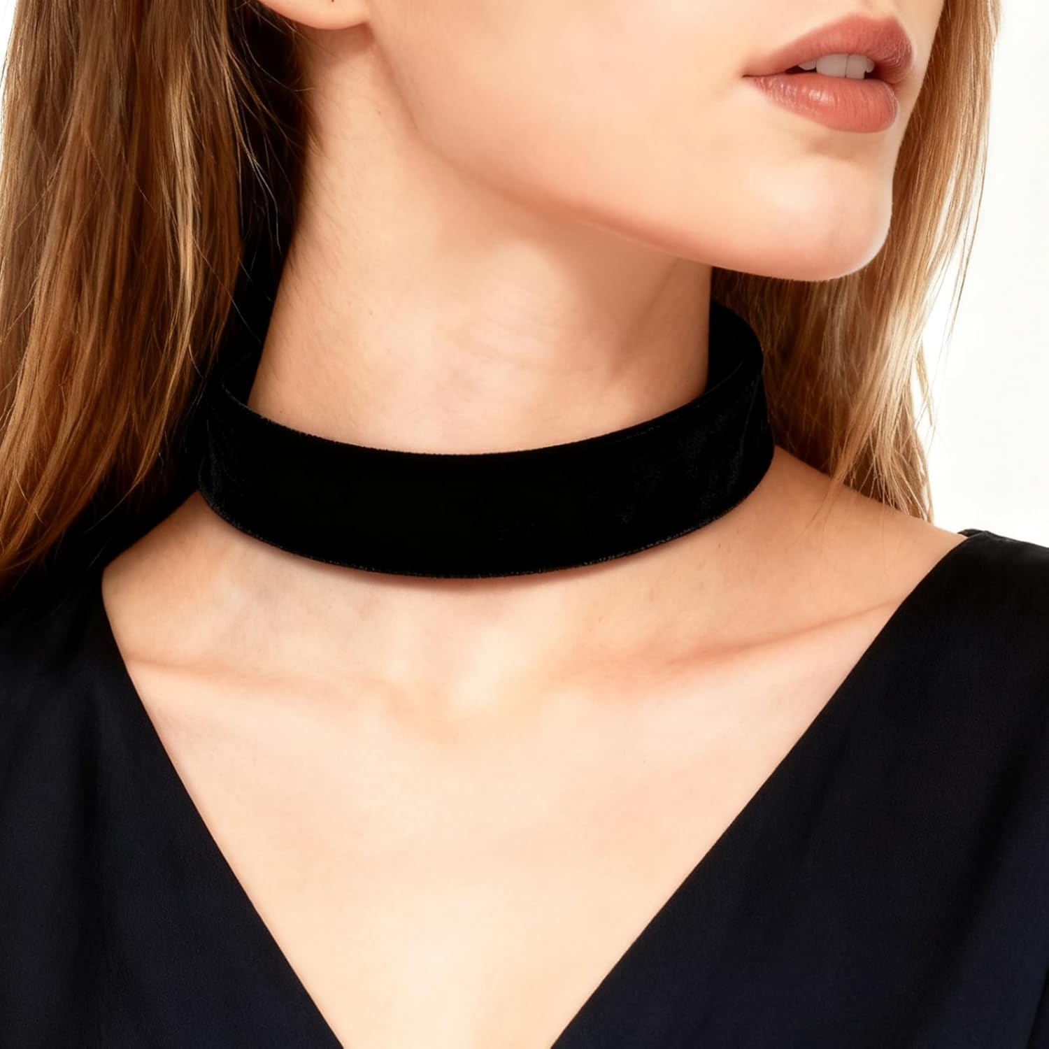Gargantilha feminina de veludo preto – Conjunto de gargantilha gótica ajustável, acessórios de colar elegante clássico
