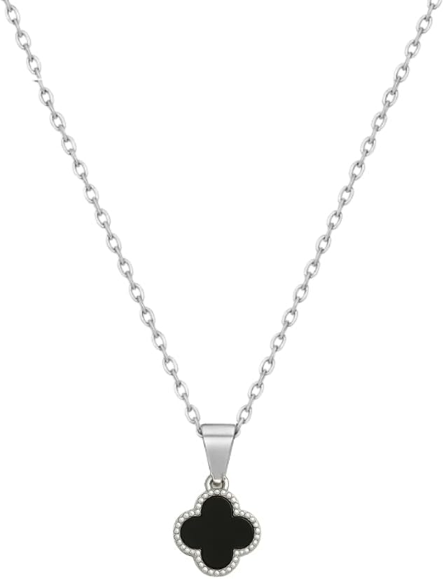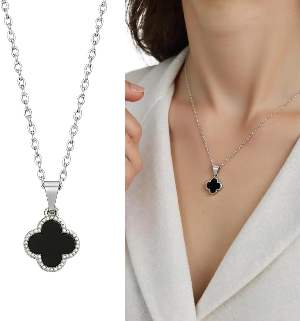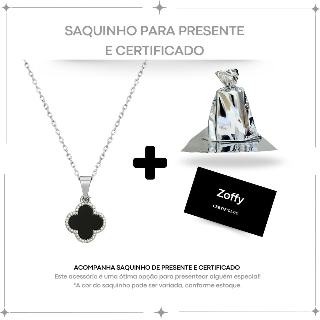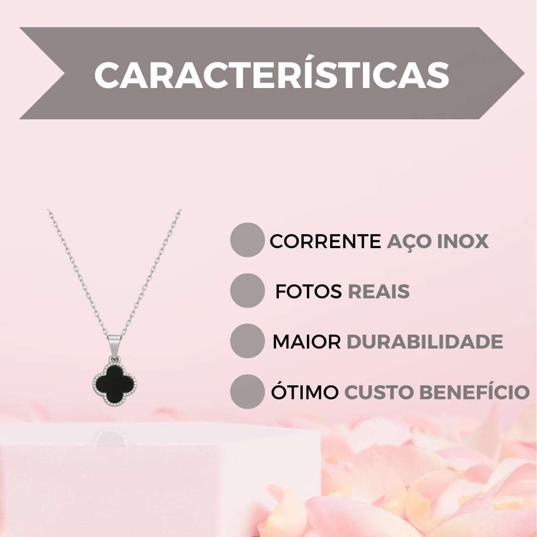 Gargantilha Trevo Preto Colar Feminino Aço Inox Prateado