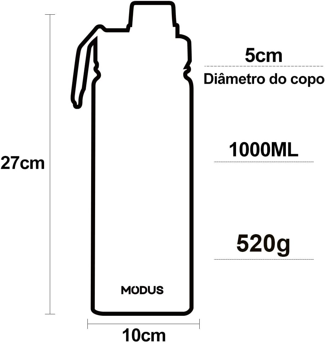 Design Portátil com Grande Capacidade: Com 1000ml de capacidade, atende às necessidades de hidratação do dia todo. Leve (apenas 445g) e prático, inclui cordão ajustável e mosquetão para fácil transporte em trilhas, ciclismo ou viagens.