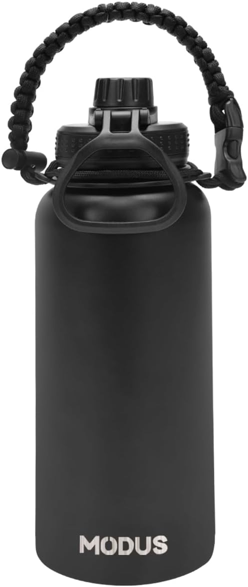 Garrafa Térmica De Água Isolada 1000ml Quente & Frio De Aço Inox Com Alça (Preto)
