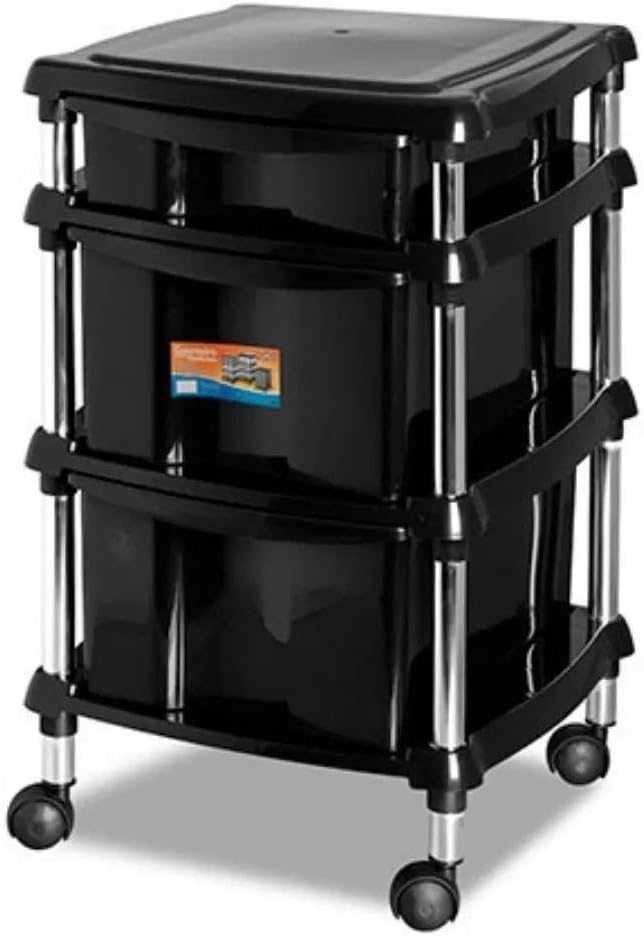 Gaveteiro Organizador Com Rodas e 3 Gavetas Preto – Niquelart