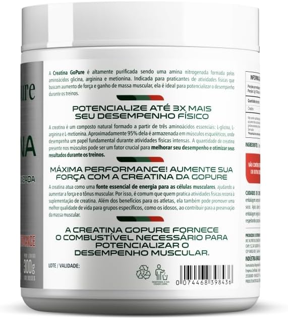 A creatina atua como uma fonte essencial de energia para as células musculares, ajudando a aumentar a força e o tônus muscular. Por isso, é comum que quem pratica atividades físicas recorra à suplementação de creatina. Além dos benefícios para os atletas, ela também pode promover uma melhor qualidade de vida para grupos específicos, como os idosos, ao contribuir para a preservação da massa muscular. A Creatina GoPure é formulada com os aminoácidos L-Taurina e L-Arginina , que potencializam o ganho muscular e ajudam a aumentar sua resistência. Sua fórmula avançada combate a sensação de fadiga, conforto energia e desempenho para seus treinos mais intensos. Creatina GoPure — Potencialize seus resultados!