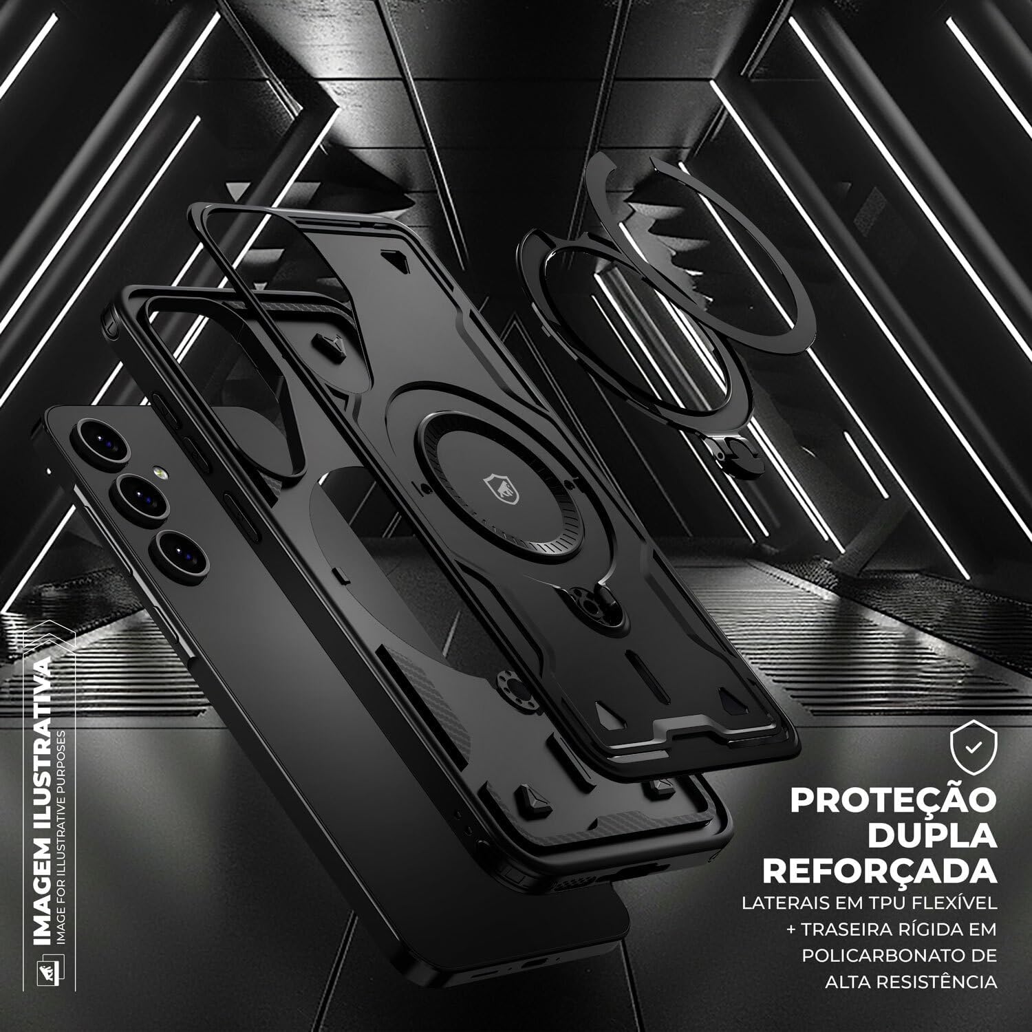 O design robusto mantém acesso total a botões, câmeras e entradas, além de possuir superfície antiderrapante e encaixe preciso para máxima usabilidade.