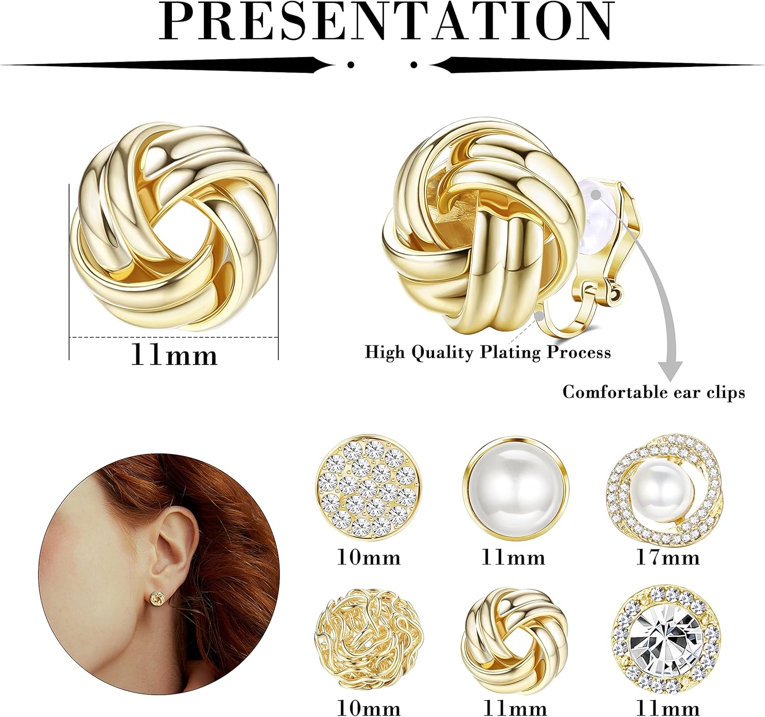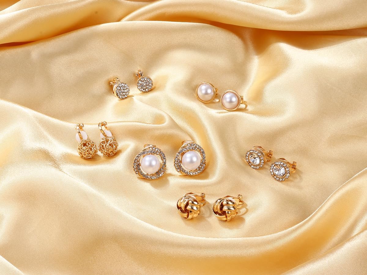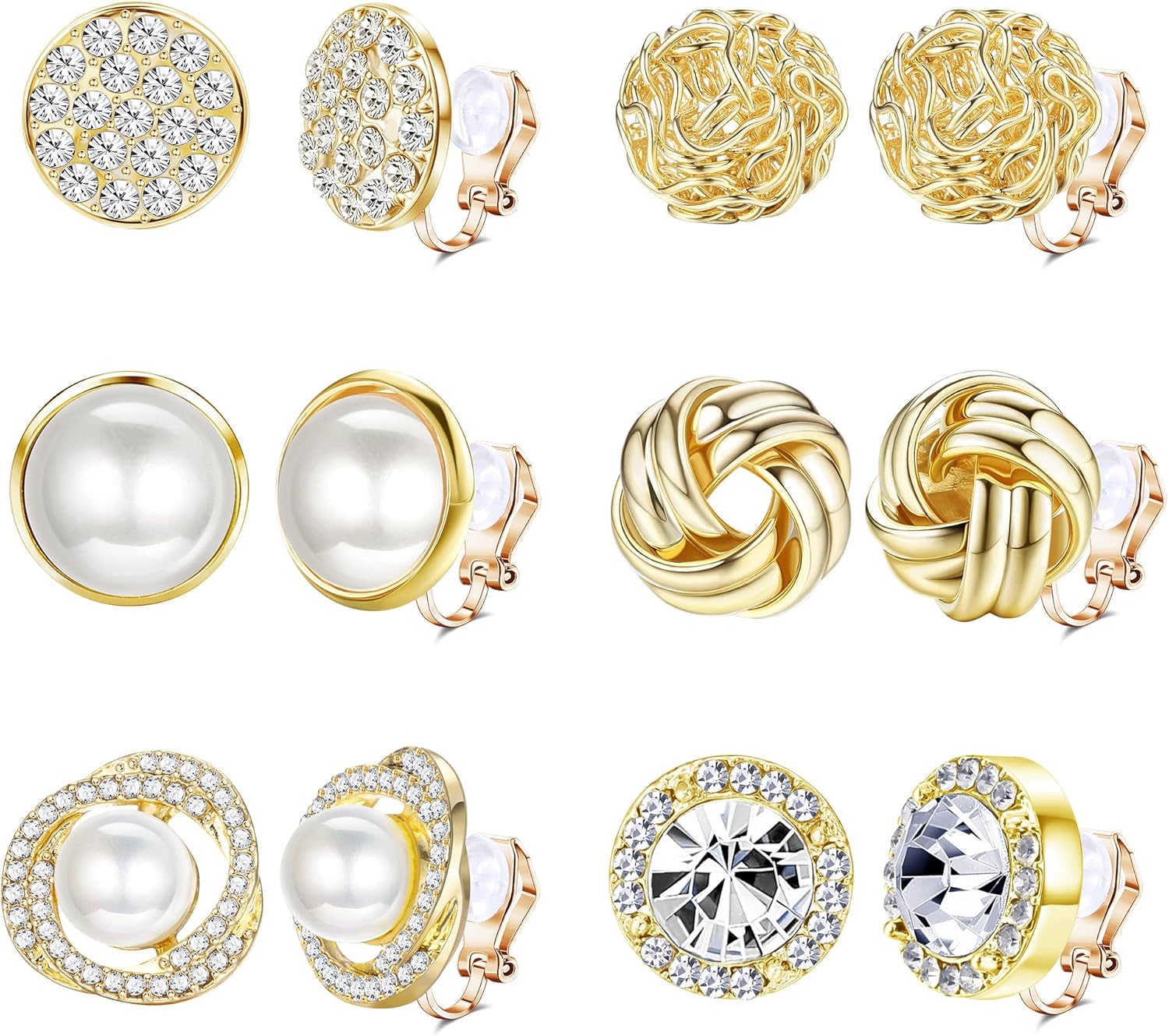 HAIAISO 6 pares de brincos de pressão de zircônia cúbica com nó de pérola e tarraxa, para mulheres e meninas, conjunto de brincos