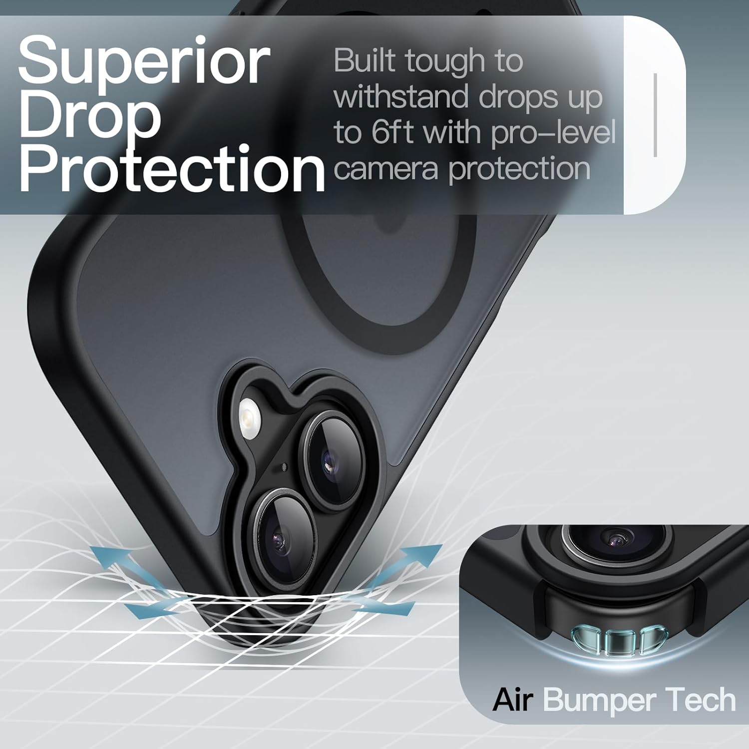 JETech Capa Magnética para iPhone 17 6,3 Polegadas Compatível com MagSafe, Case de Telefone Traseira Fosca Translúcida, Fina e Minimalista À Prova de Choque (Preto)